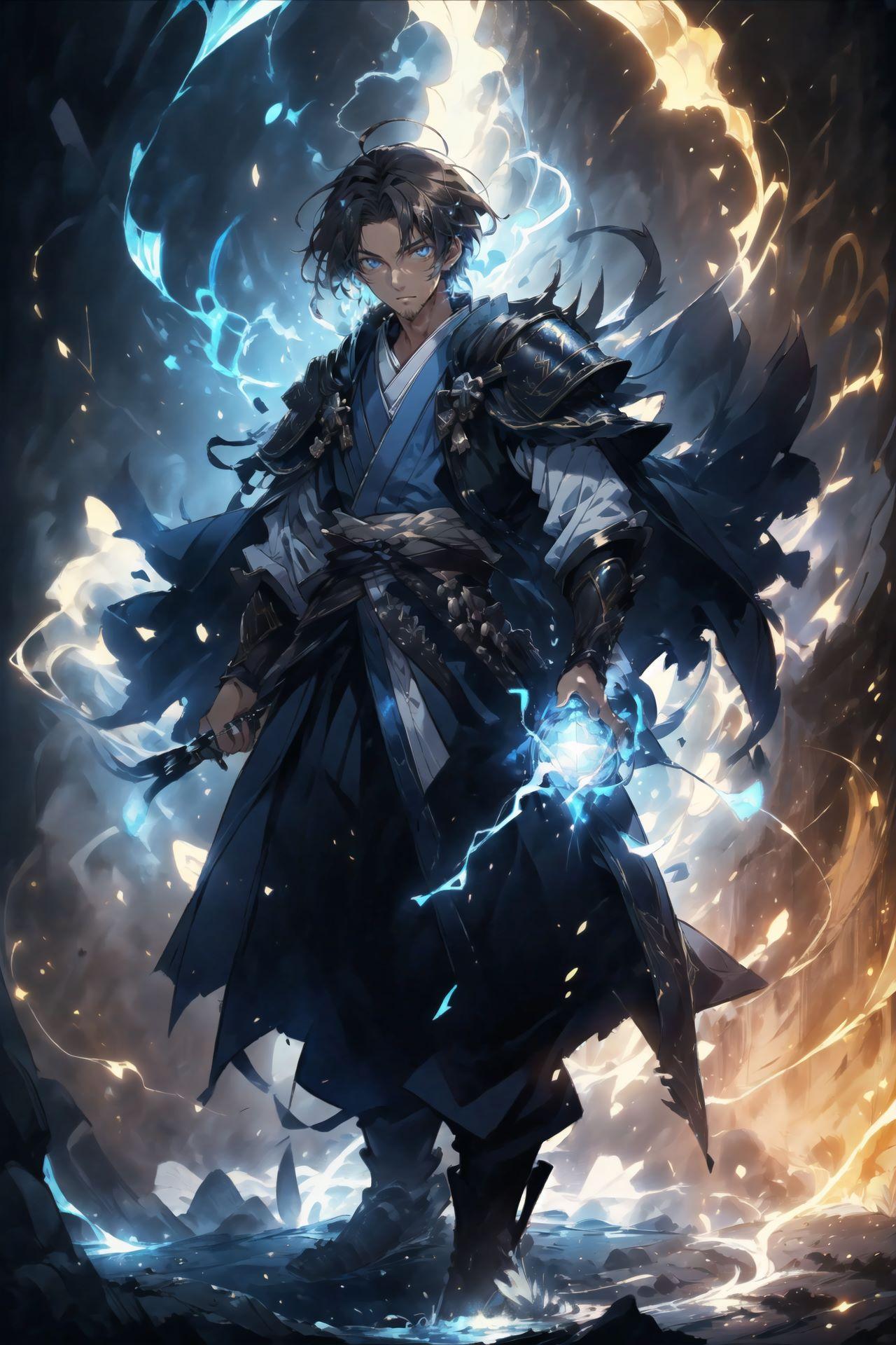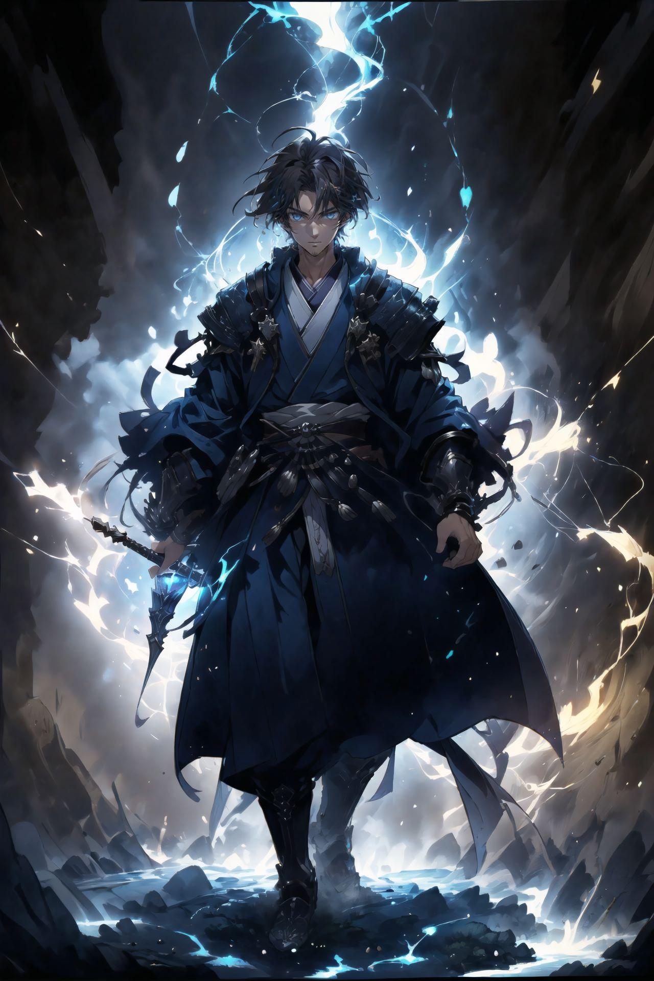 書き込み量を増やし、戦いに挑む真剣な顔と目つきと凄み、雷のオーラを纏って、よりカッコよく、より強そうにしてみました。