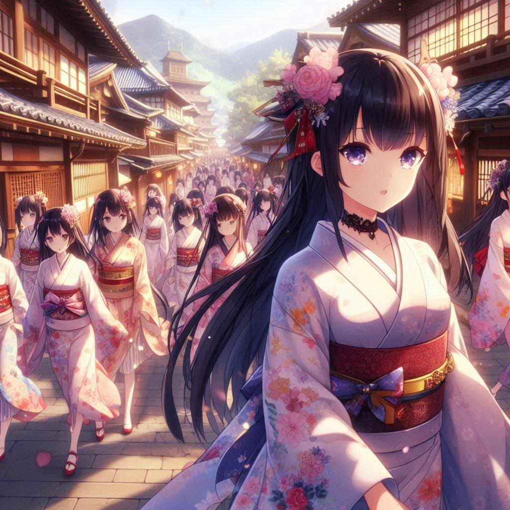 「東京府女子師範学校の修学旅行で京都に来ました。さすが元日本の『京』だけあって雅な風情でありますが、私たちが大勢詰めかけたので風情がぶち壊しですw」