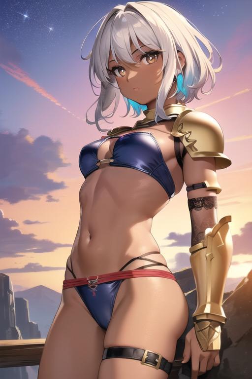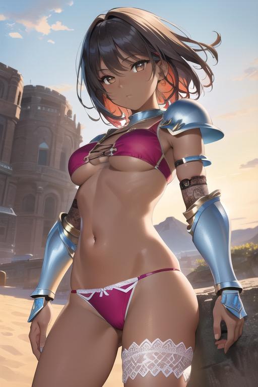 アーマー部分を剥ぎ取られて一瞬無防備になった褐色ギャル達という感じです。