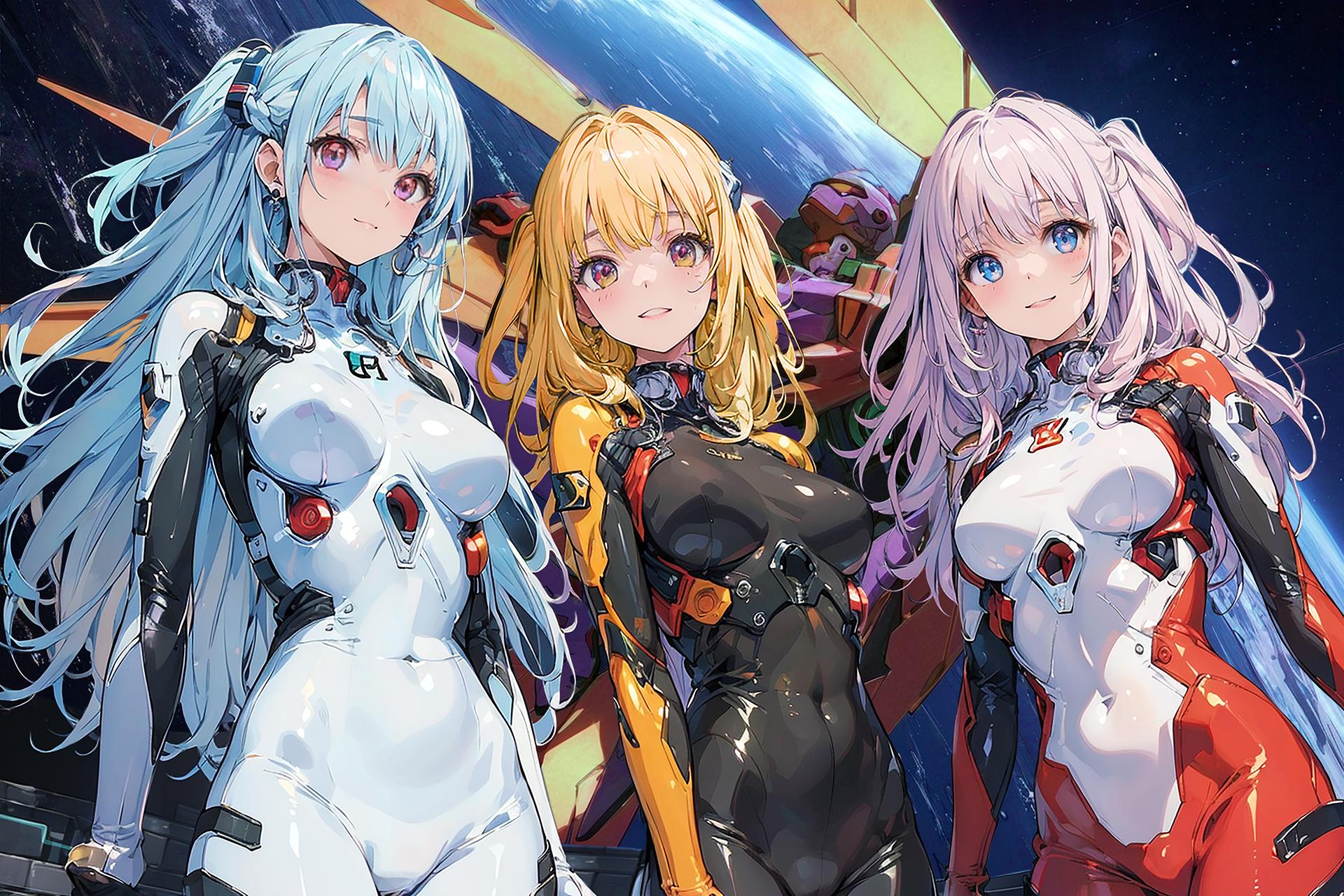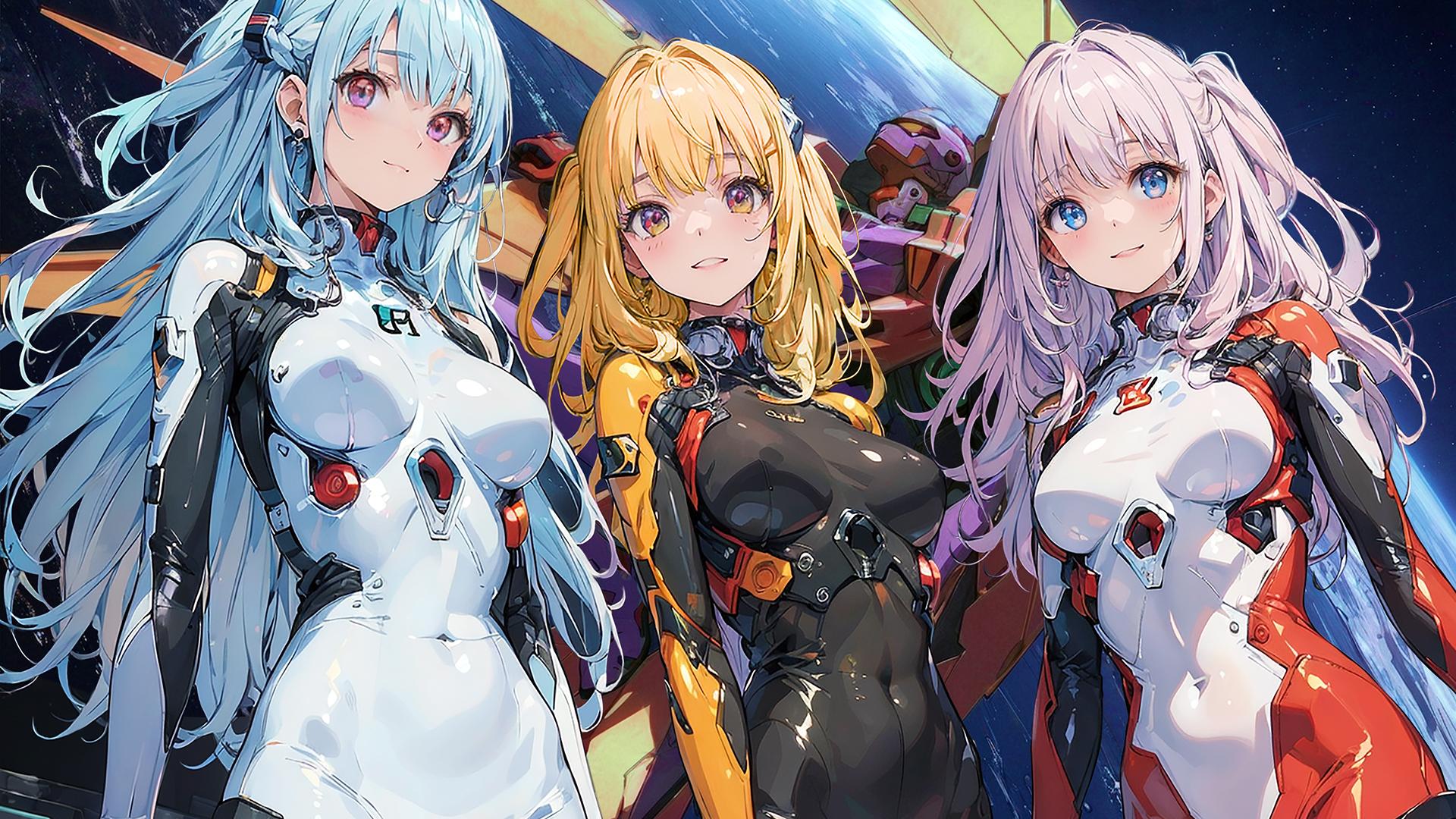 一枚目がちちぷい生成画像を横1920pixelに拡大後、加筆修整したもの、