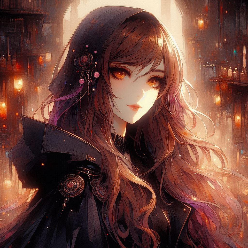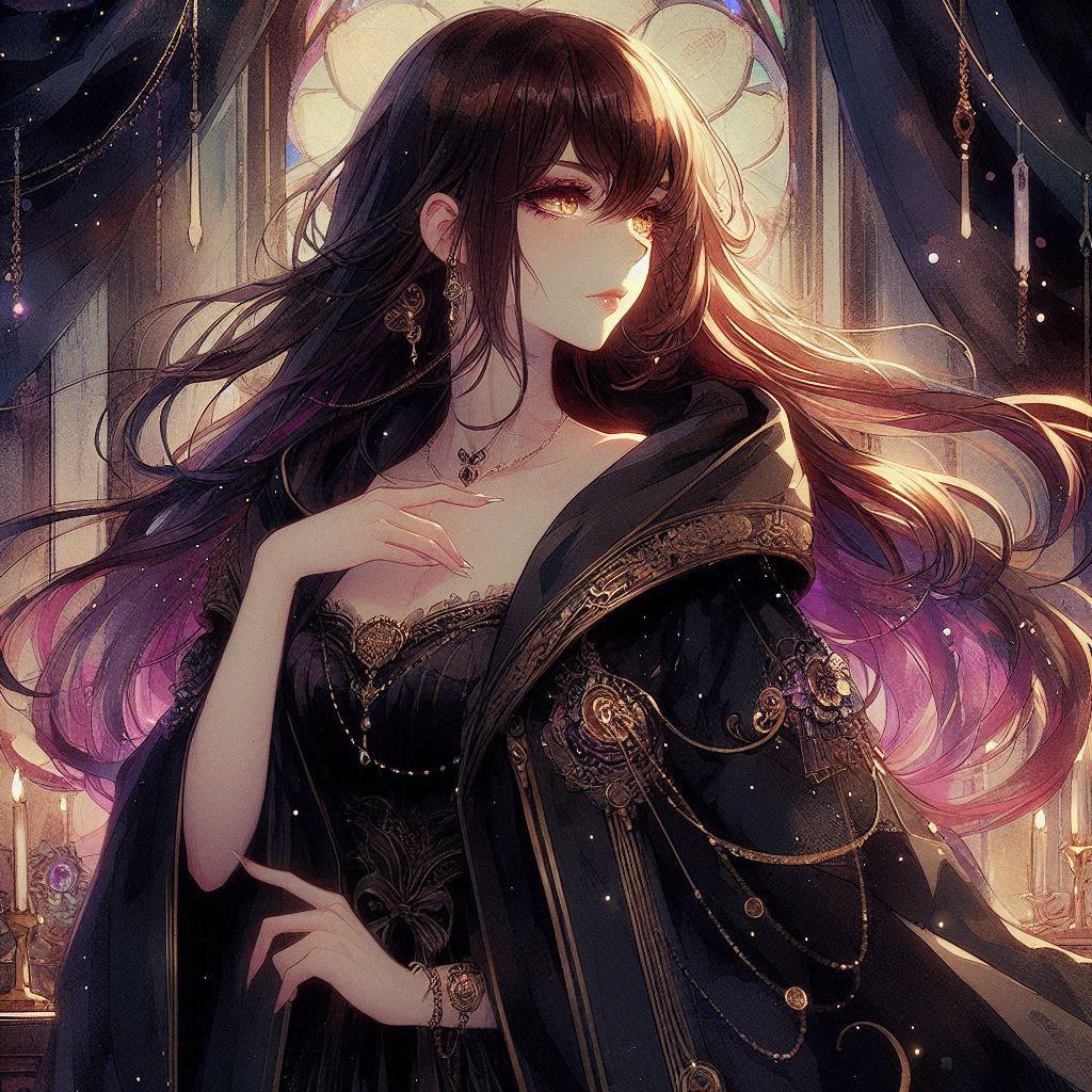 黒いローブをまとった女性が姿を現す。その瞳には美しさと同時に、鋭い威圧感が宿っていた。