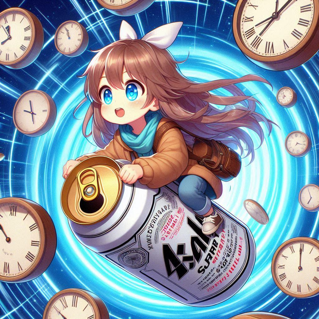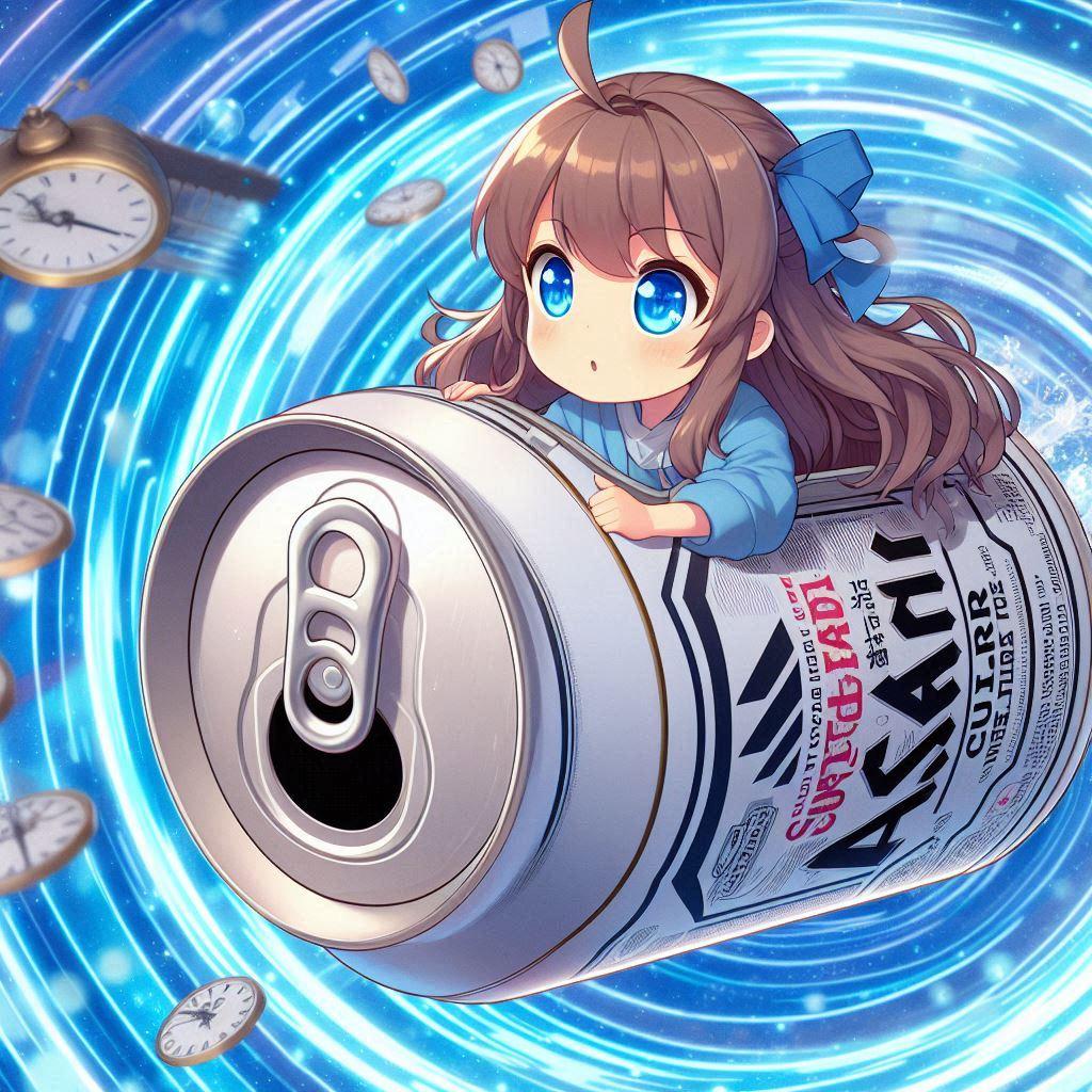 ビール缶型タイムマシンに乗って時空を移動する小さな女の子