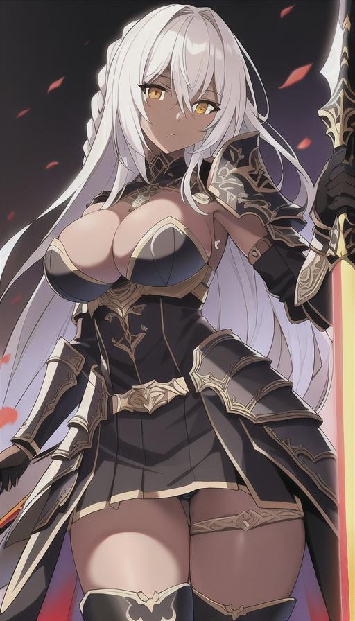 ビキニ姿の女戦士って感じです。白銀のビキニアーマーと漆黒のビキニアーマー