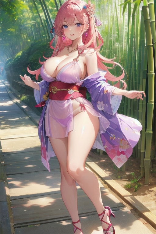 直接3Dにすると柄まではでず、sheerな感じだけになるのですが、2Dでは、プロンプトのbeautiful sheer kimono dressをうまく再現してくれます😊