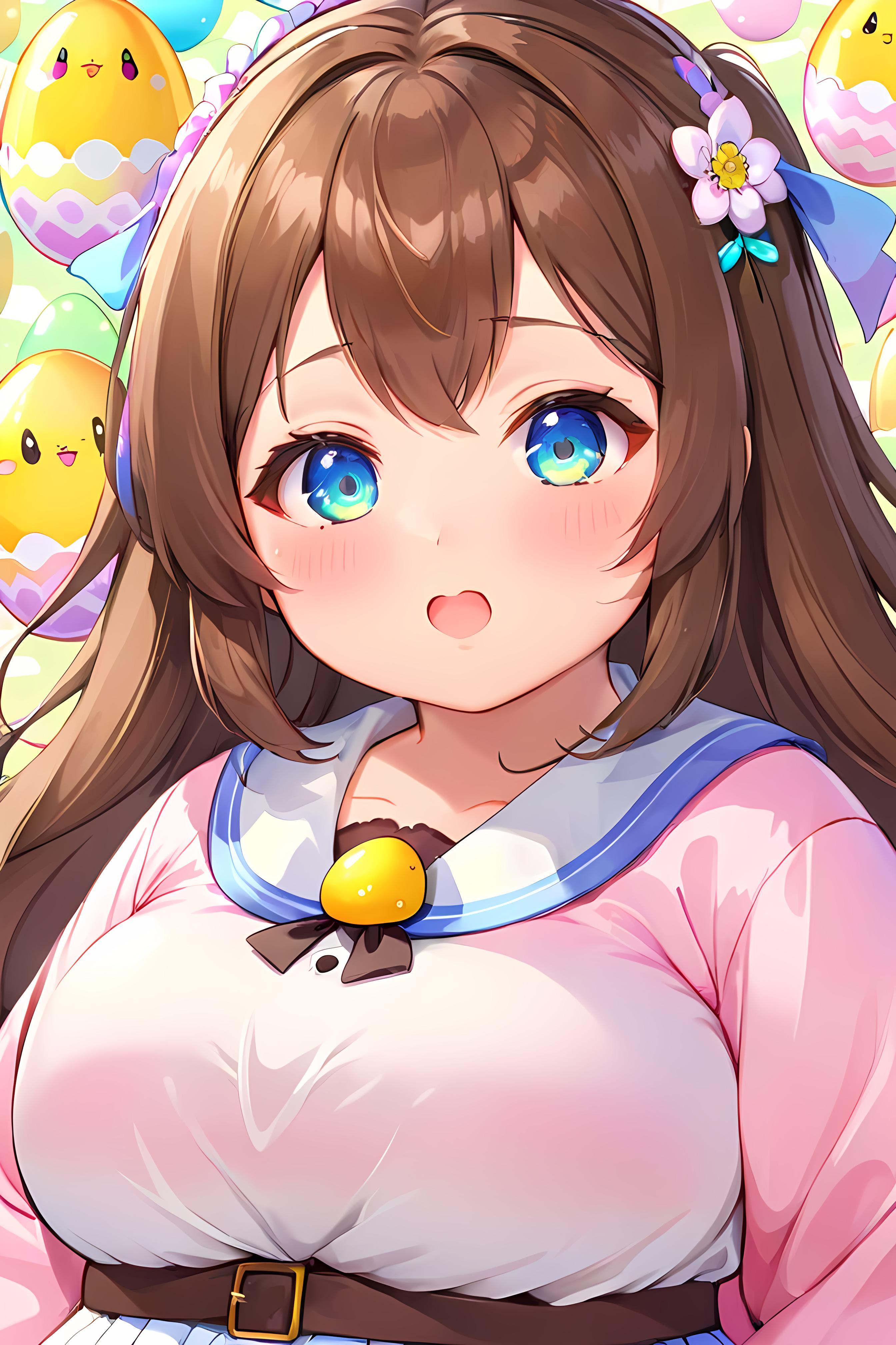 イースターエッグとぽっちゃり学園生のぽっちゃり系AIイラストです