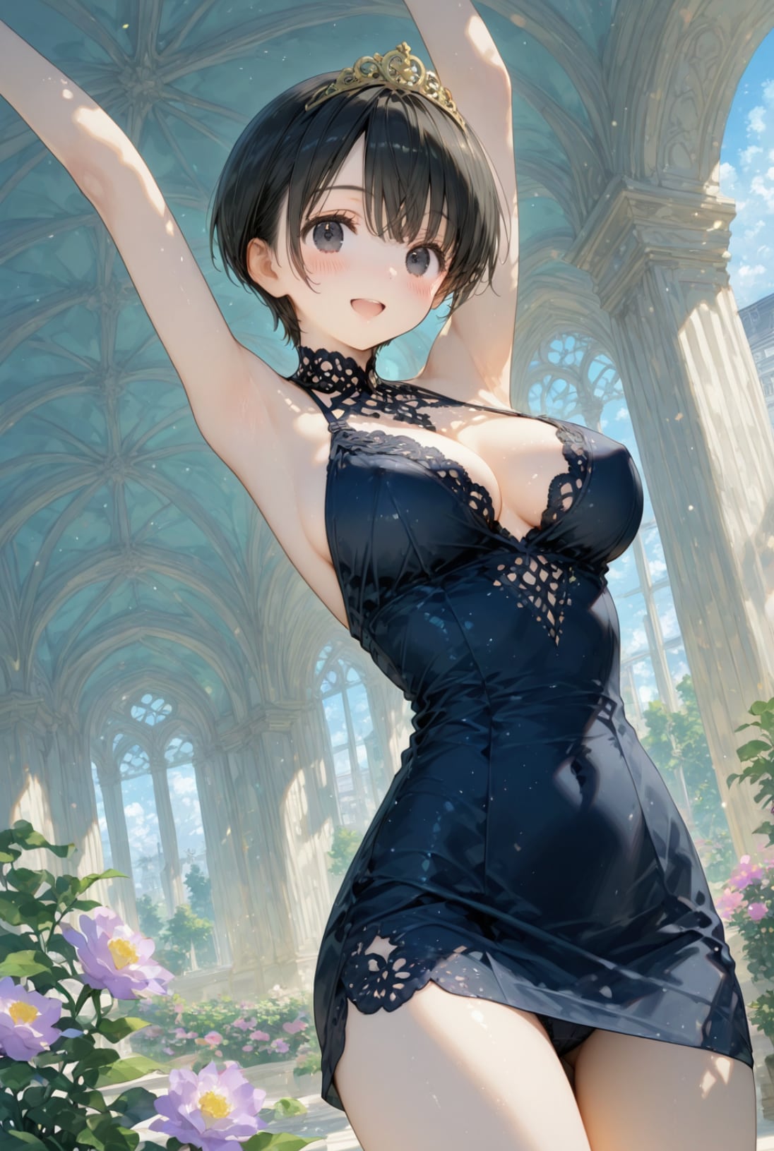 パンツが見えそうなくらいギリギリの短さのセクシードレスでふとももとノーブラおっぱいを惜しげもなく見せつけて興奮しちゃうお姫様