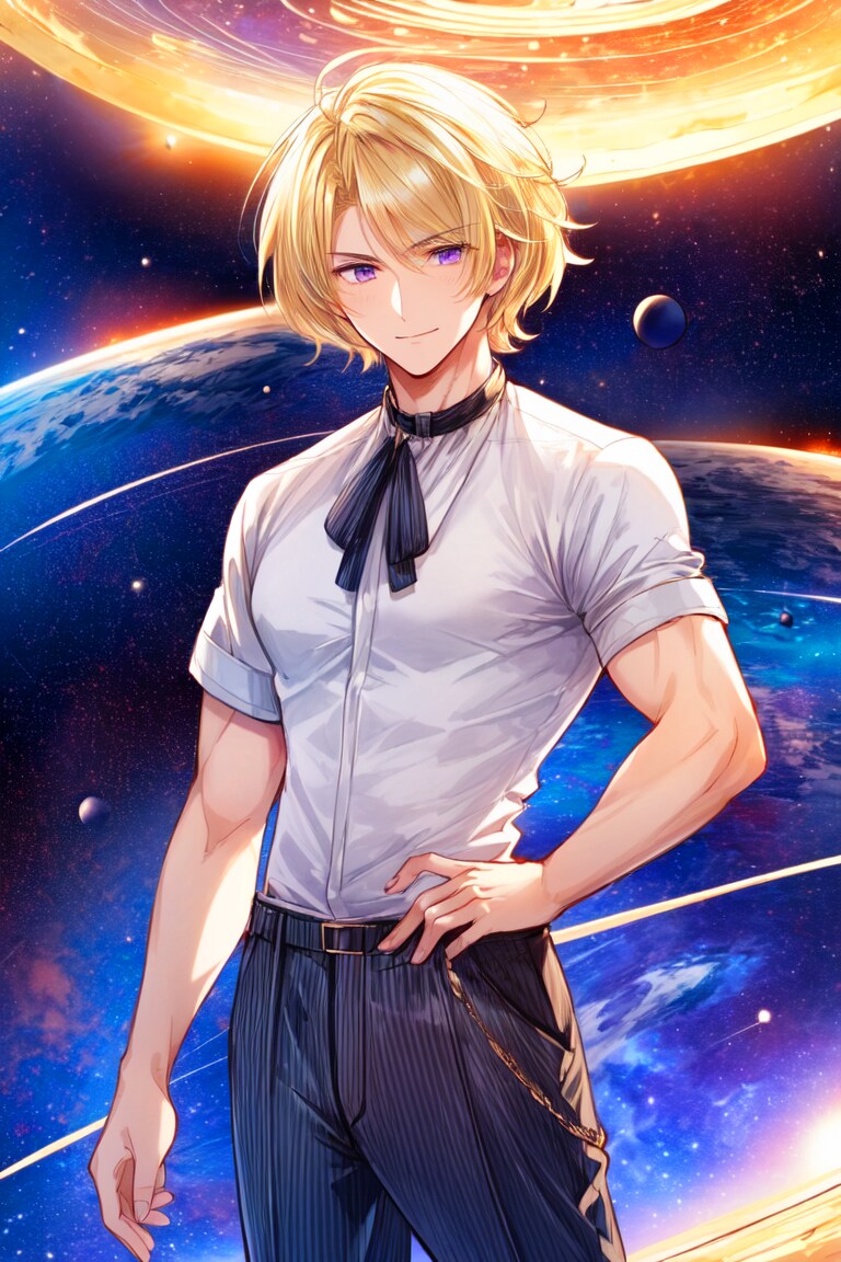 金髪お題ということで、いつもの黒髪短髪男性をベースに生成してみました。また金ということで思いついたのが金星だったので、金星と生成してみました。