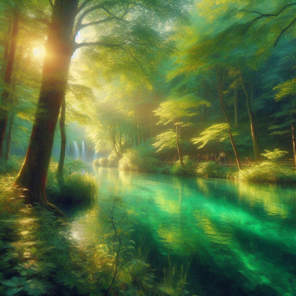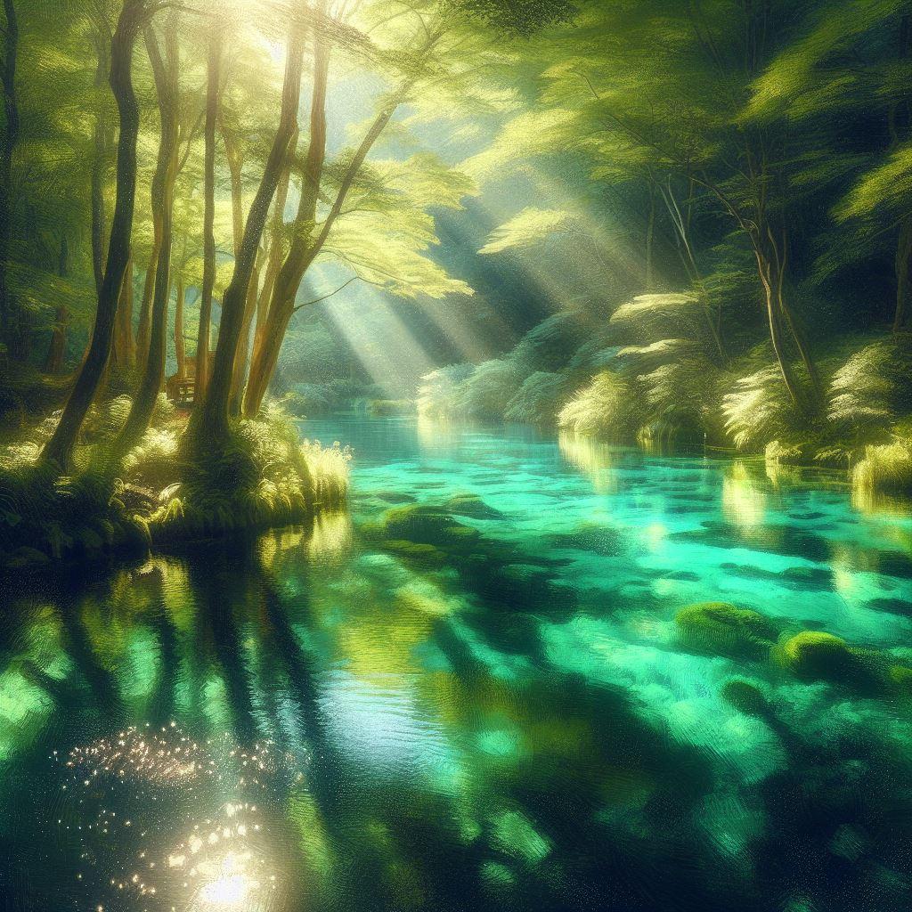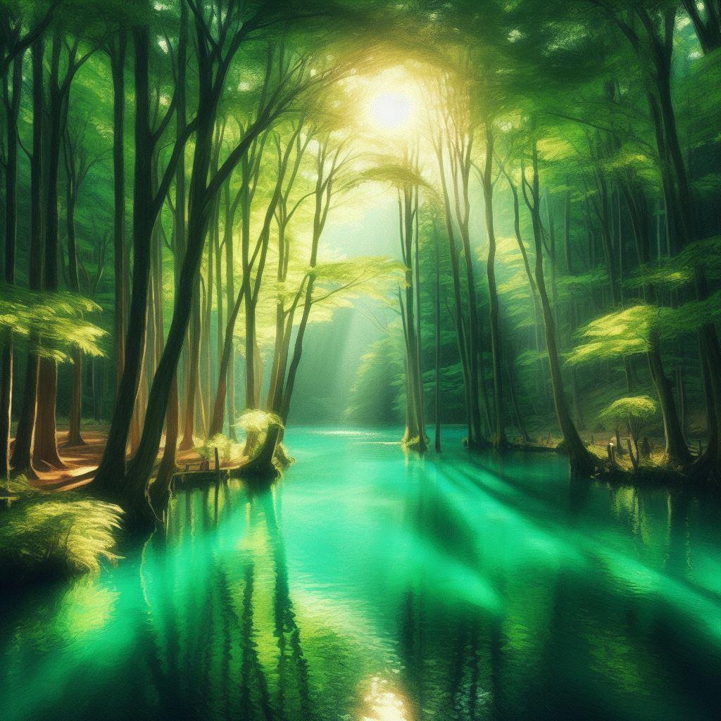 夢に出てくるような神秘的な雰囲気の湖をイメージして生成しました。