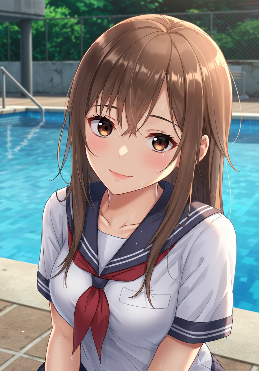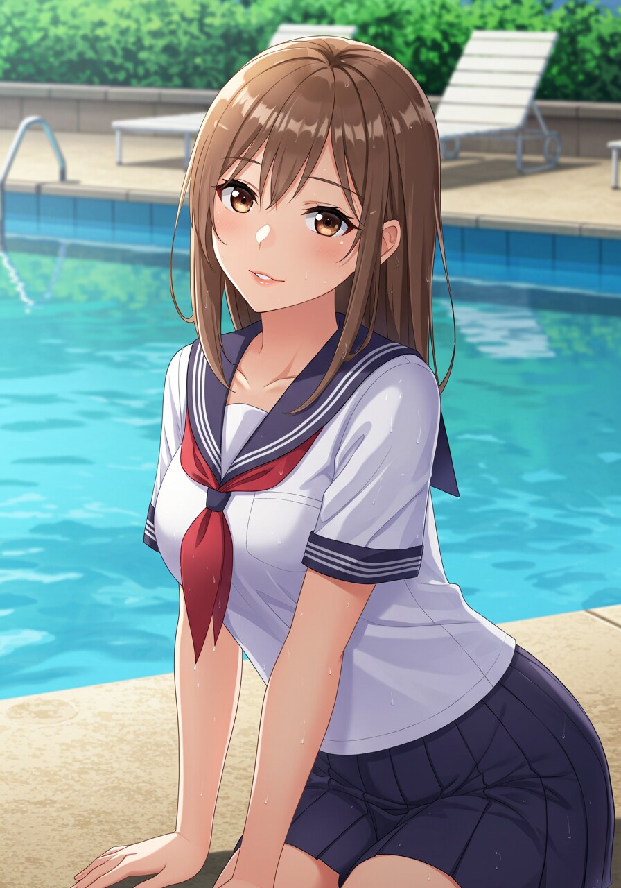 先輩とプールサイドで