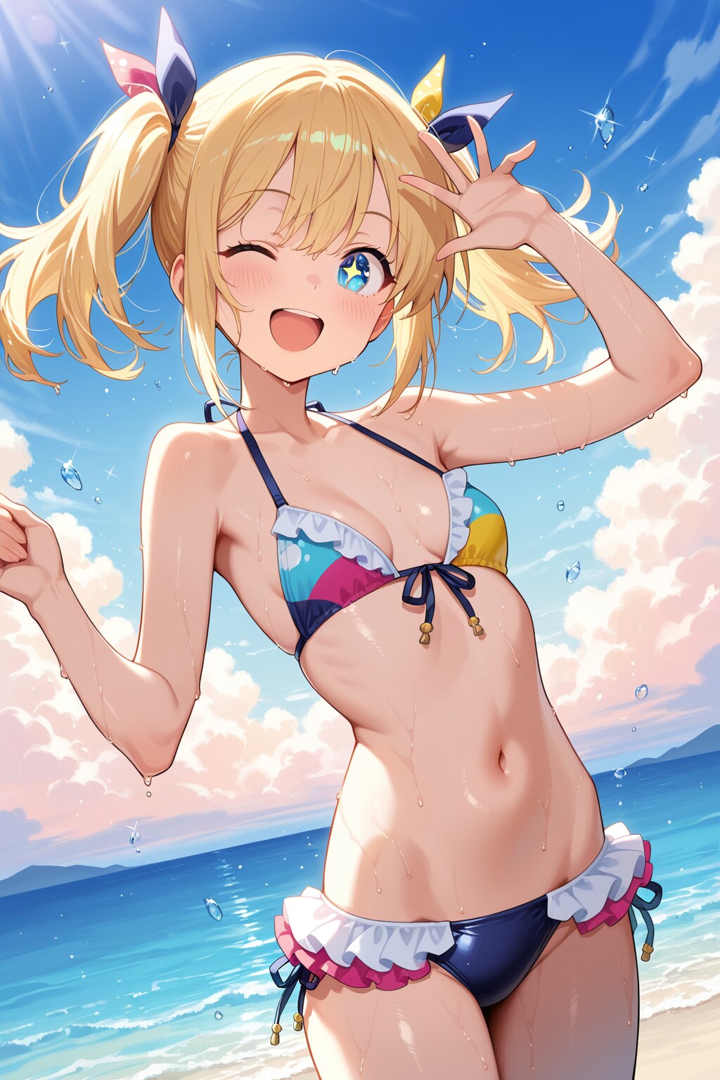 海でアイドルっぽい水着を着る喜楽里ちゃん