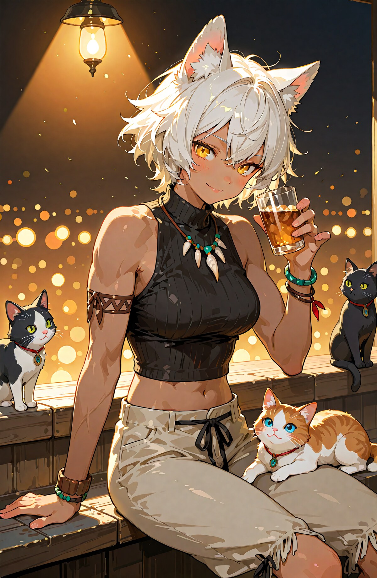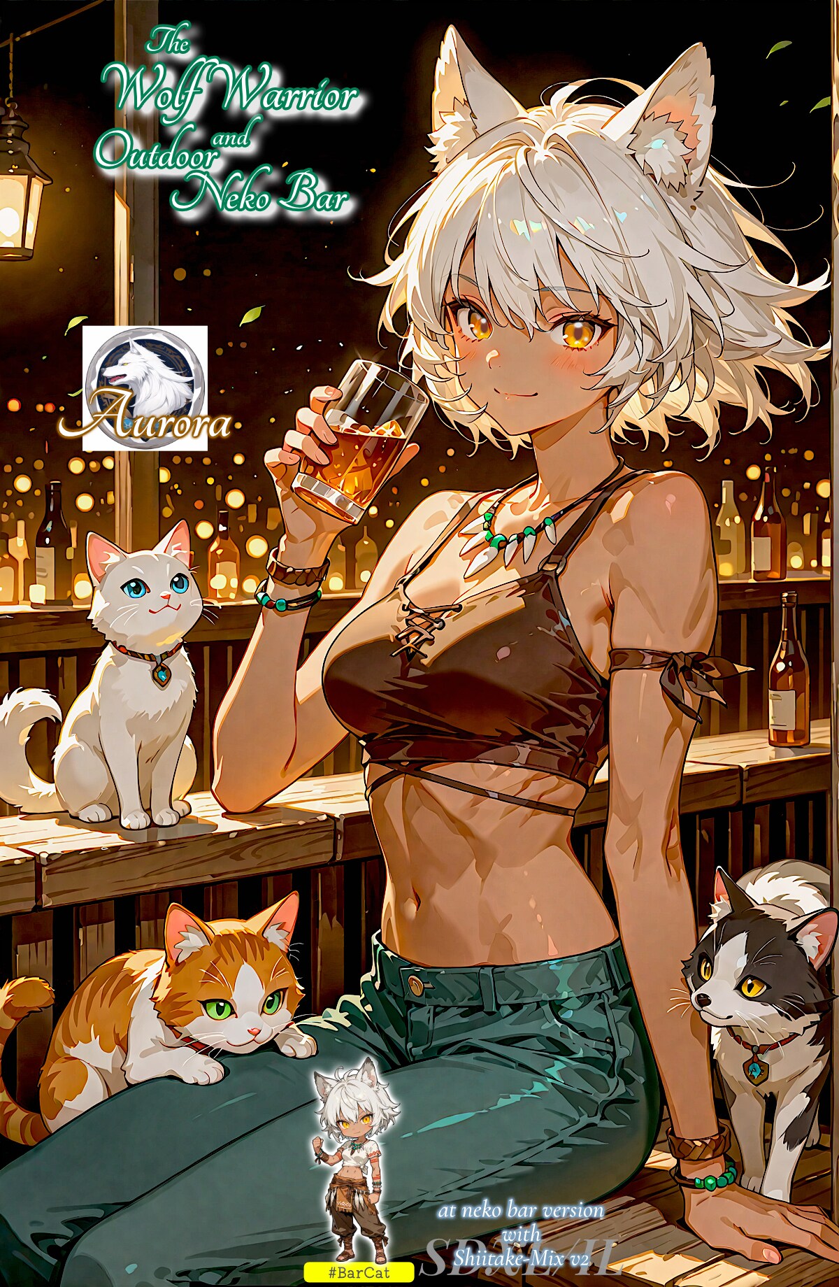デルタもんフォースちゃんに続いてなんとなくけもみみキャラが行った方が良い気がしてきて...モフモフ大人けもみみキャラの人狼アウローラさんが爽やかな夜の屋外BARに行ってみました。
