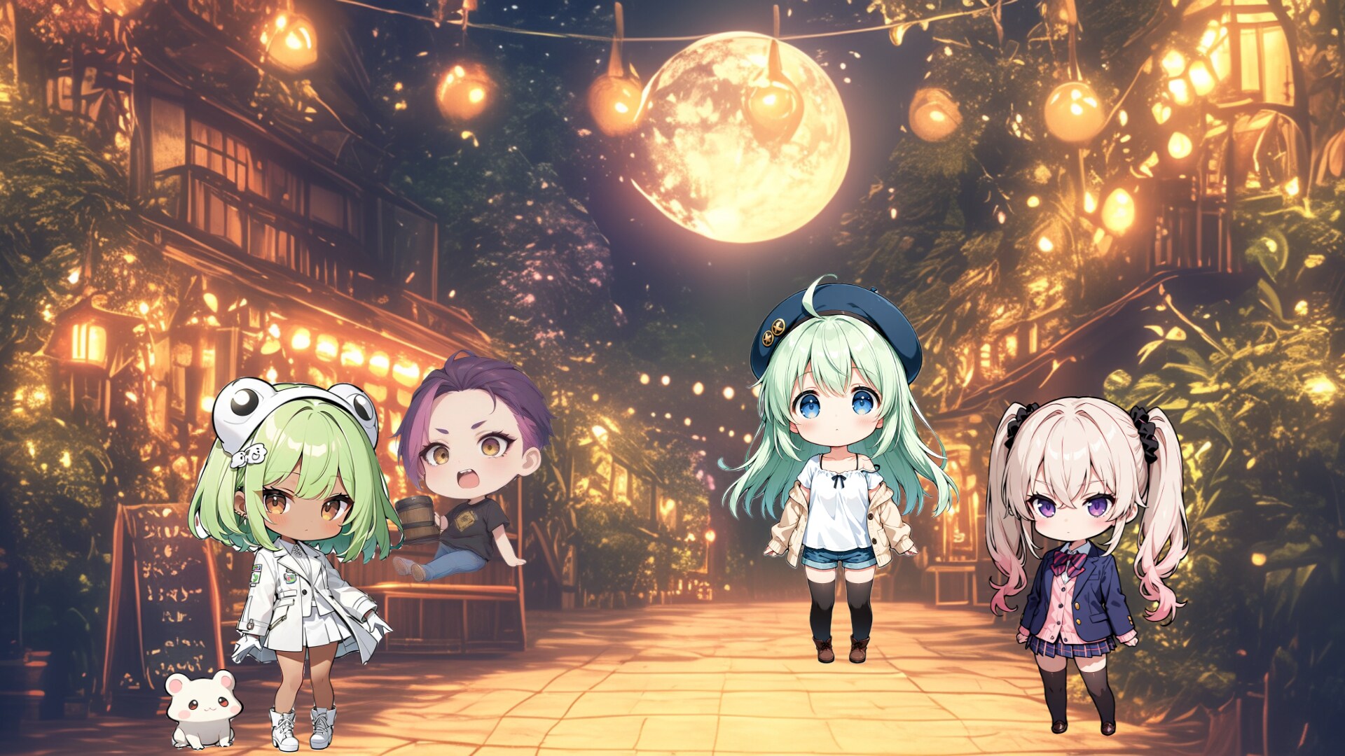 8枚目:夜の町。月の似合う方々と美味しいお酒もあるようです!