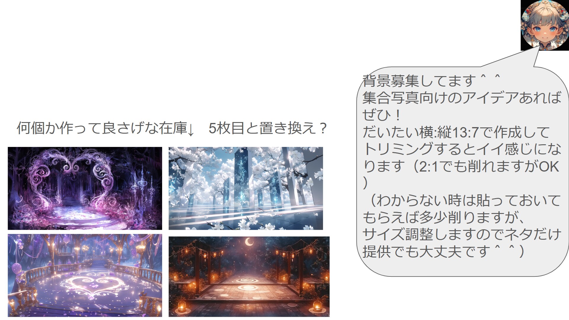 (むしろ背景じゃない、集合写真向きな別のアイデアでもOK)