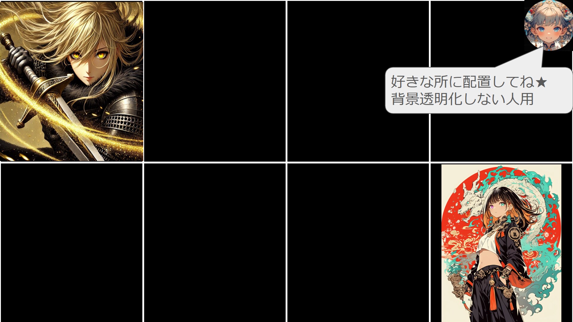 背景透過できなくて、でも載せたいイラストがありましたら、