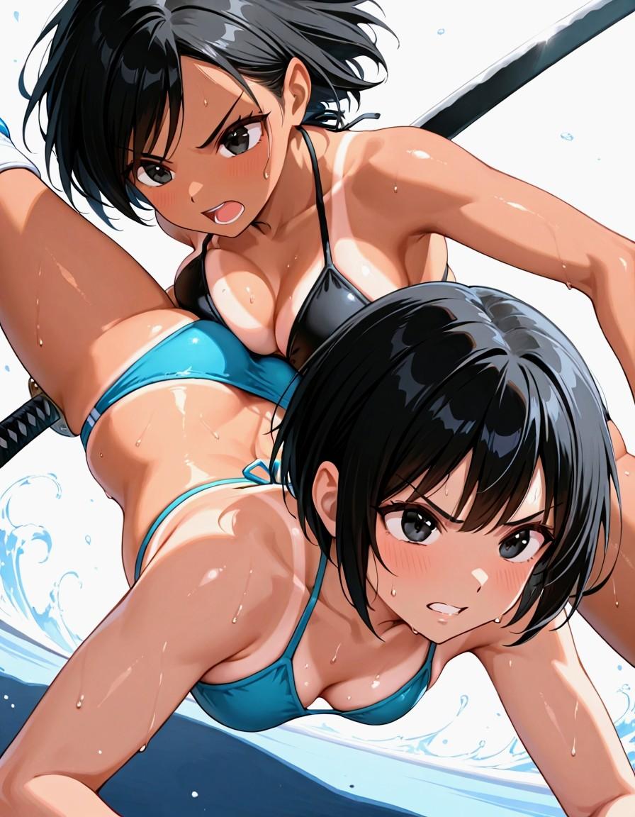 黒ビキニ先輩、どっちが強いか勝負じゃ!!