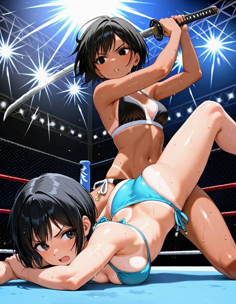 黒ビキニ先輩、勝負あった!討ち取ったり〜!