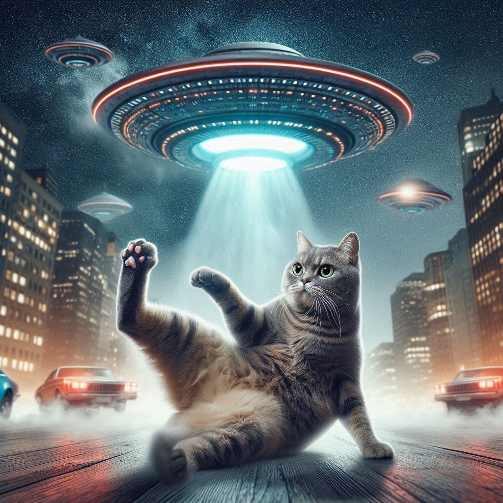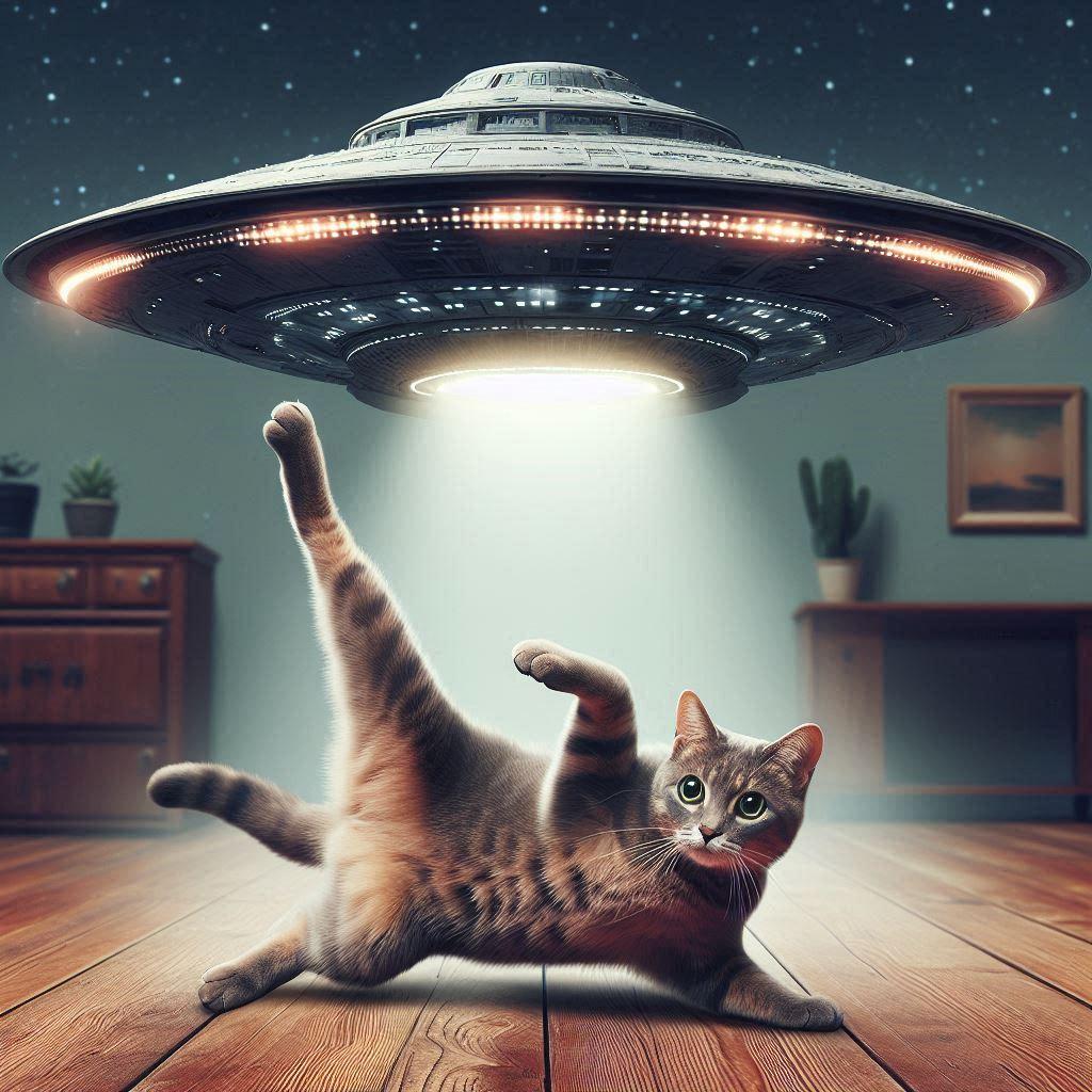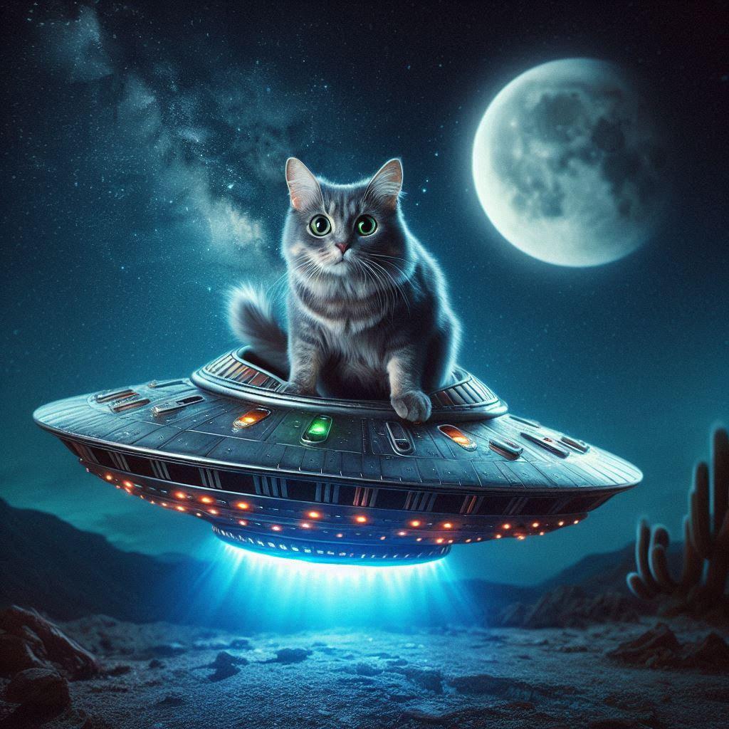 6/25追記:「未確認飛行物体と猫」が2024年6月24日のAIフォトデイリーランキング5位に入りました!