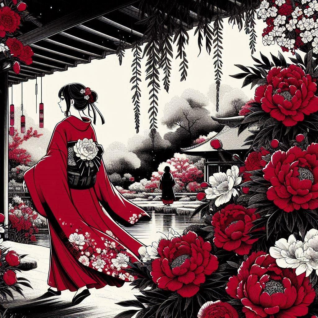 情熱の赤「牡丹の日本庭園」