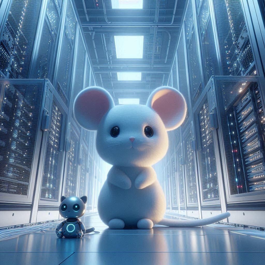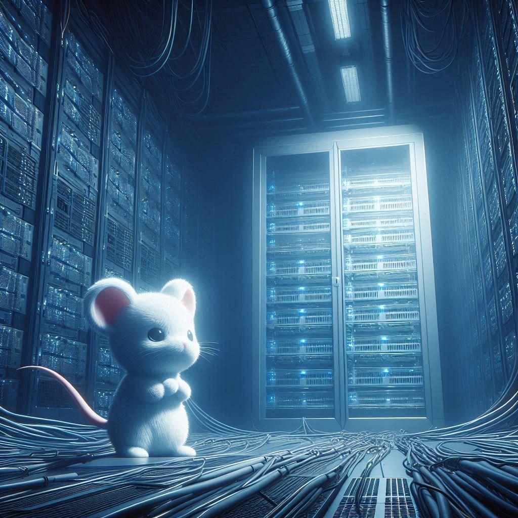 人の行けない道をたどってデータサーバまでたどり着いたねずみくん。