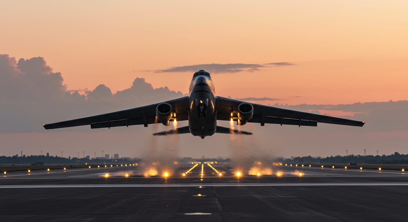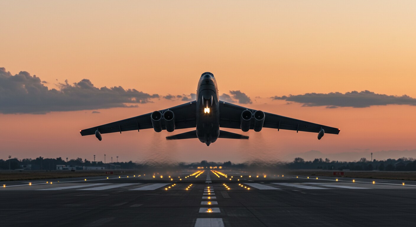 魔王軍の敵陣に向かって戦略爆撃機が離陸