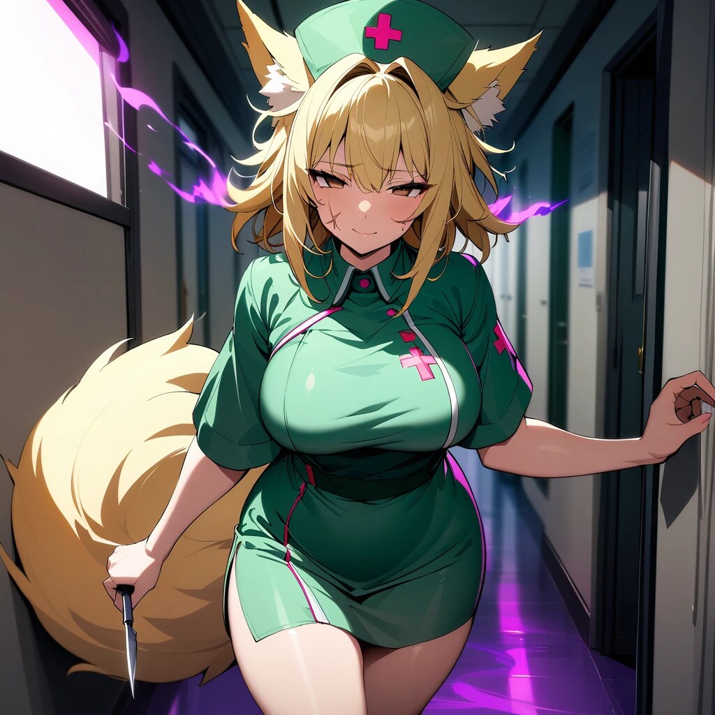 あとカルテかメスから紫色のオーラを出したかったのですがなかなか思った場所に出てくれませんね。プロンプト指定の順番とか強度をもっと意識しないと駄目かも。
