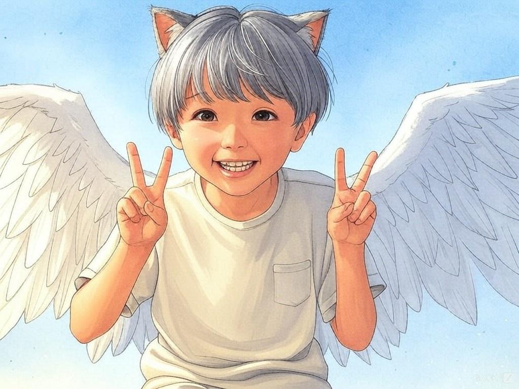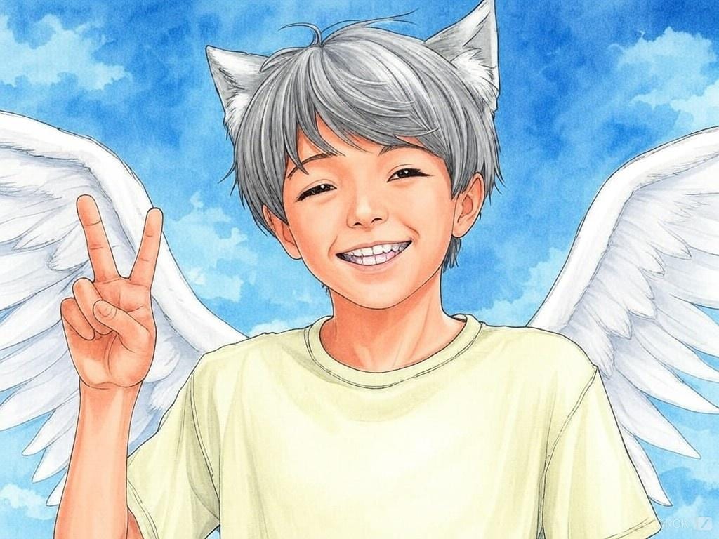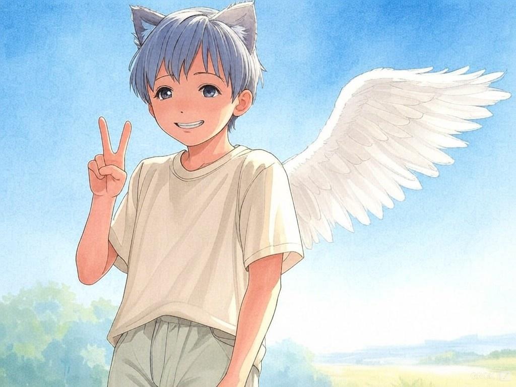 見せてくれる方に「おじいちゃん天使を見てみたい」とリクエストをして、そのイラストのおじいちゃんを生成してくださったのが嬉しくて、少年天使で物語紡ごうかとなって、本作の少年天使になりました。