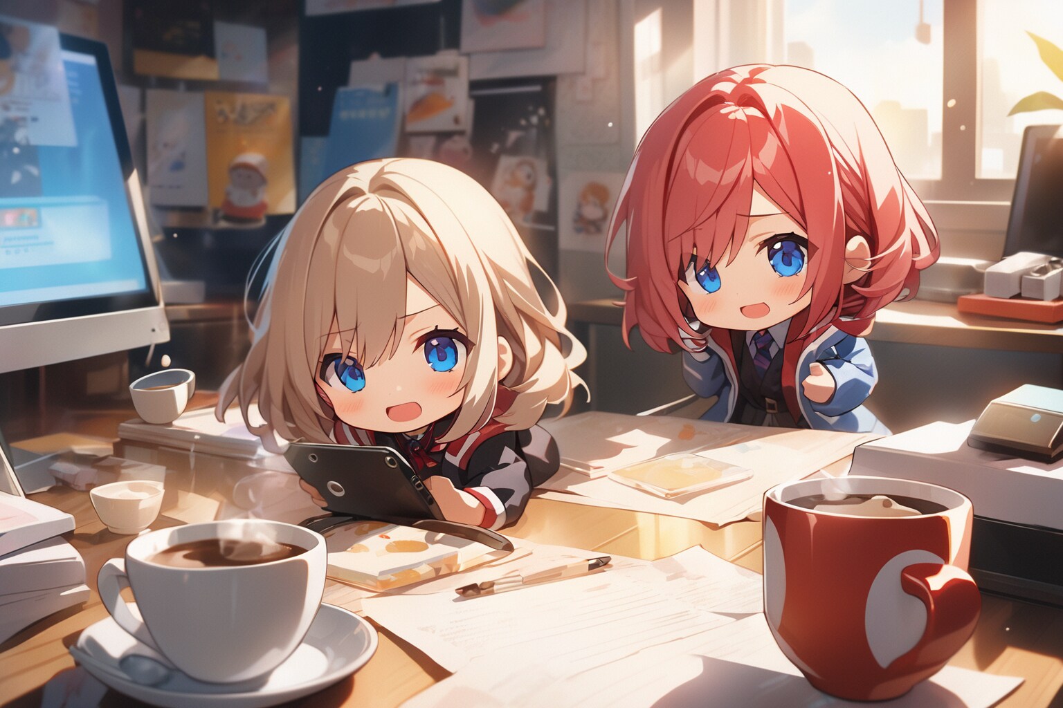 が、それでもあまり仕事しているようには…💧 男性社員と一緒にとりあえず何かやってる風?