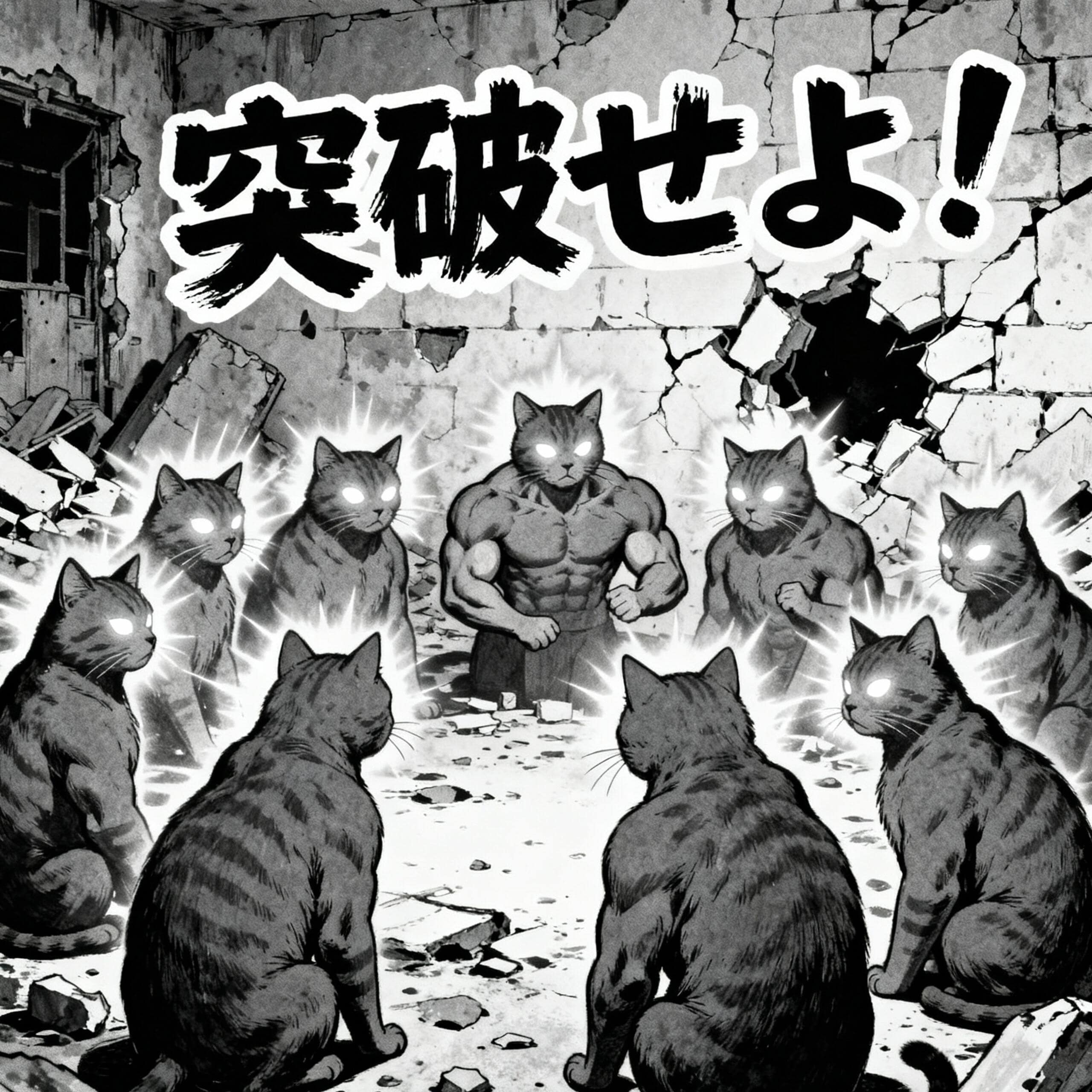 「パッと思い付いた物語をプロンプトに書いて生成させるのはどうかにゃ?」