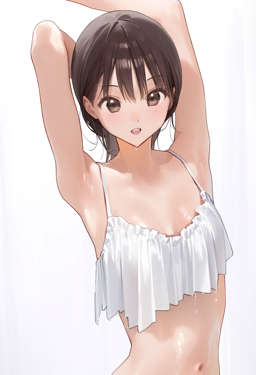 腋の隠蔽率が皆無な服?を着て、美腋を晒している美少女