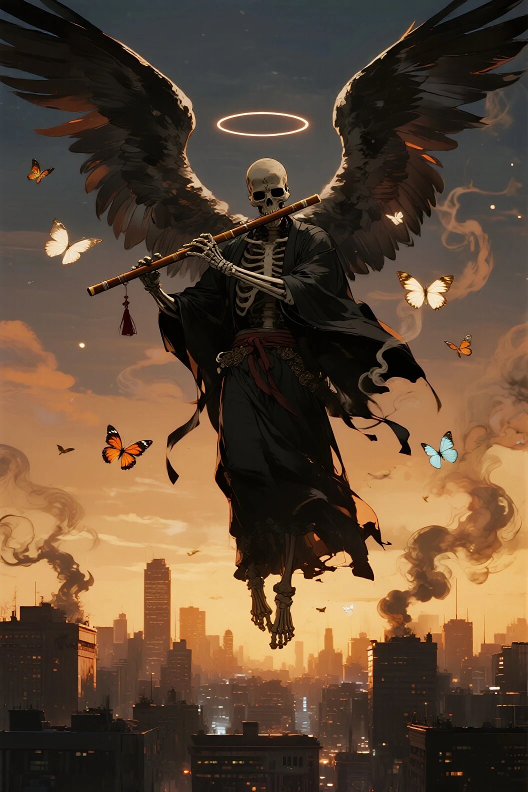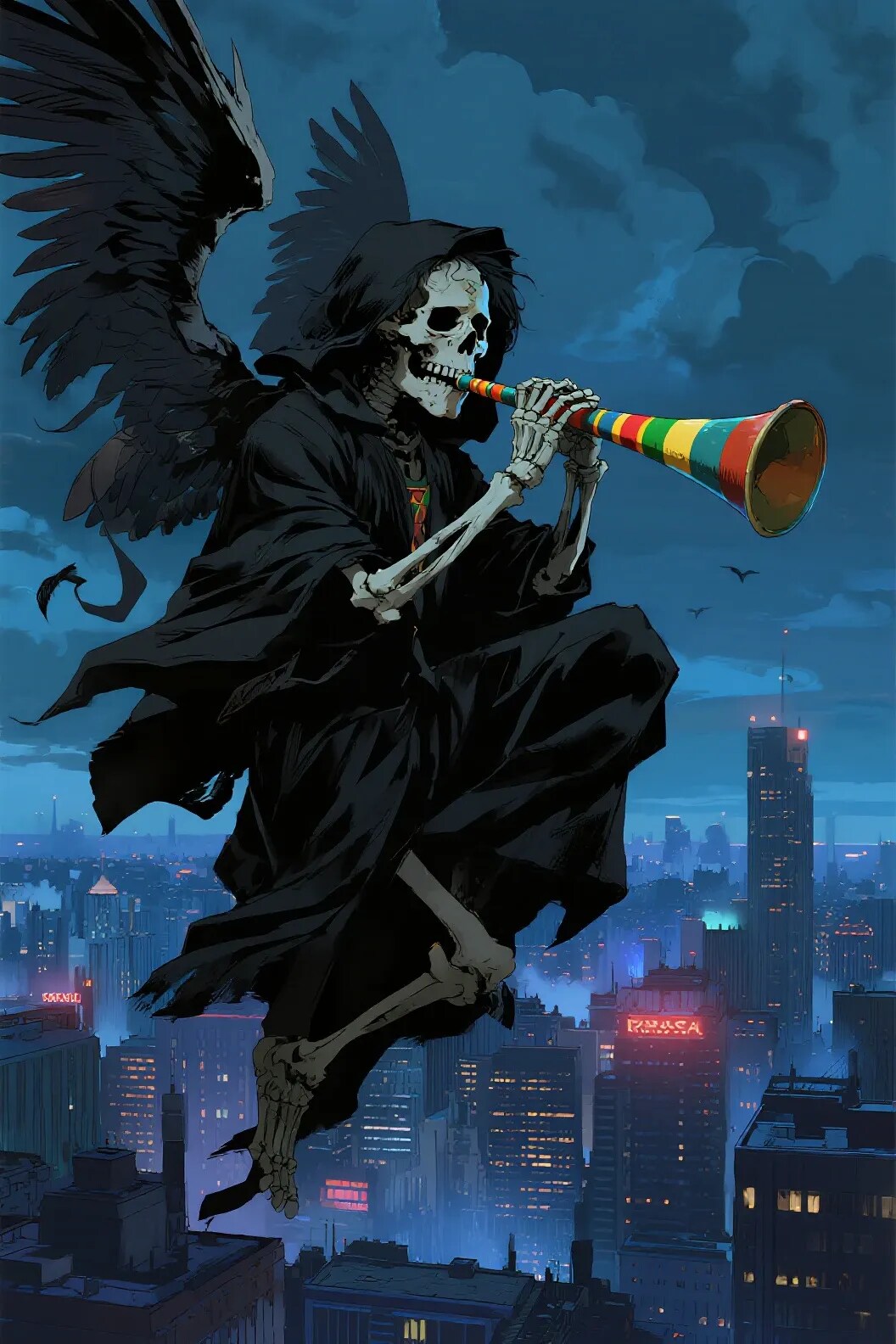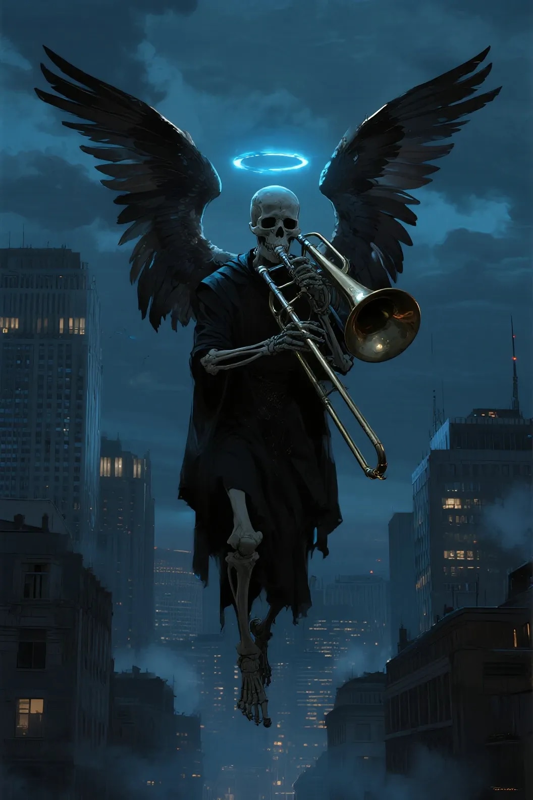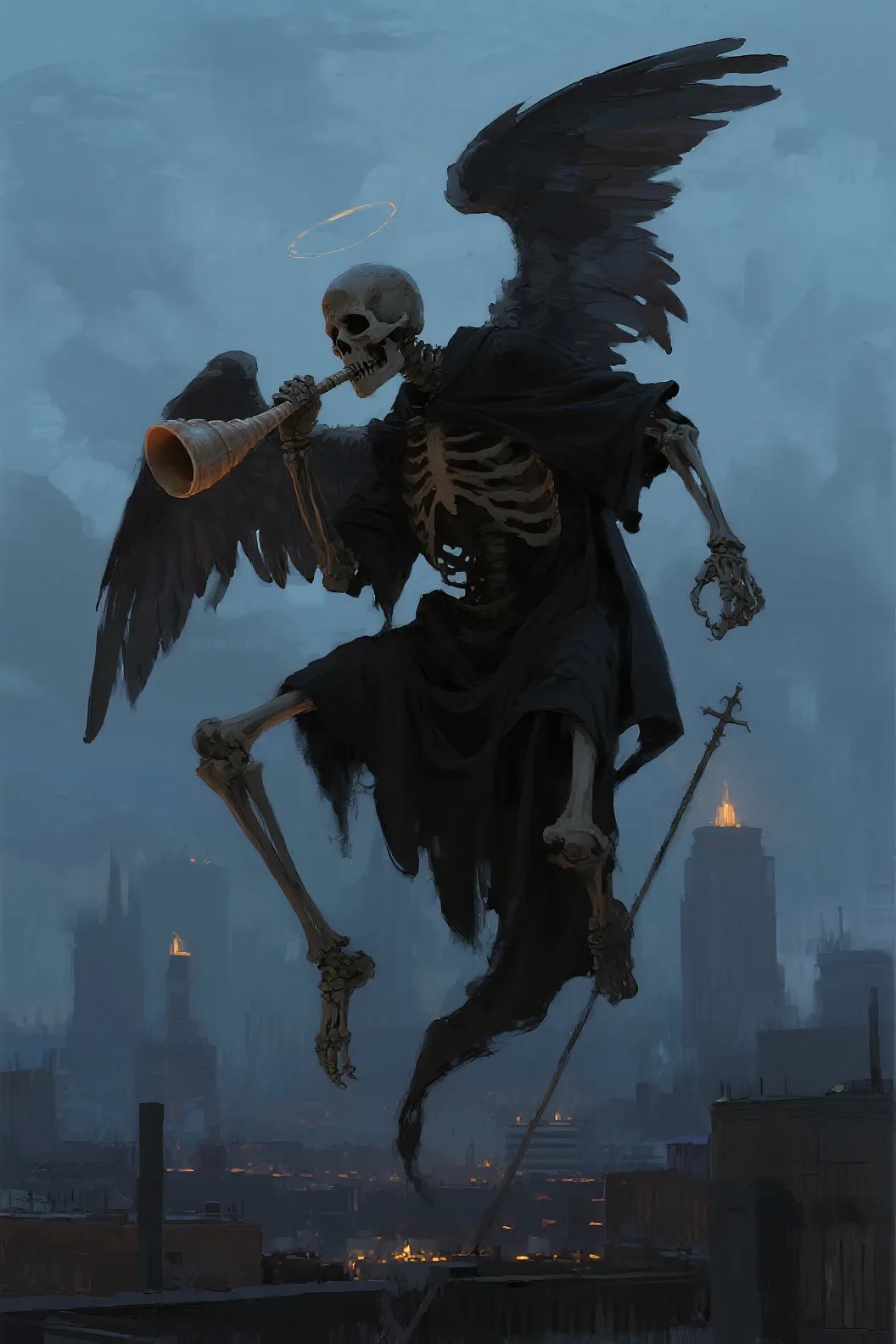ユーフラテス川のほとりにつながれている四人の御使が解き放たれる。彼らは人間の三分の一を殺すために解き放たれ、赤色、青色、橙色の胸当てを着けた二億人の騎兵隊が出陣し、彼らの乗り物の口から出る火と煙と硫黄で人間の三分の一が殺される。