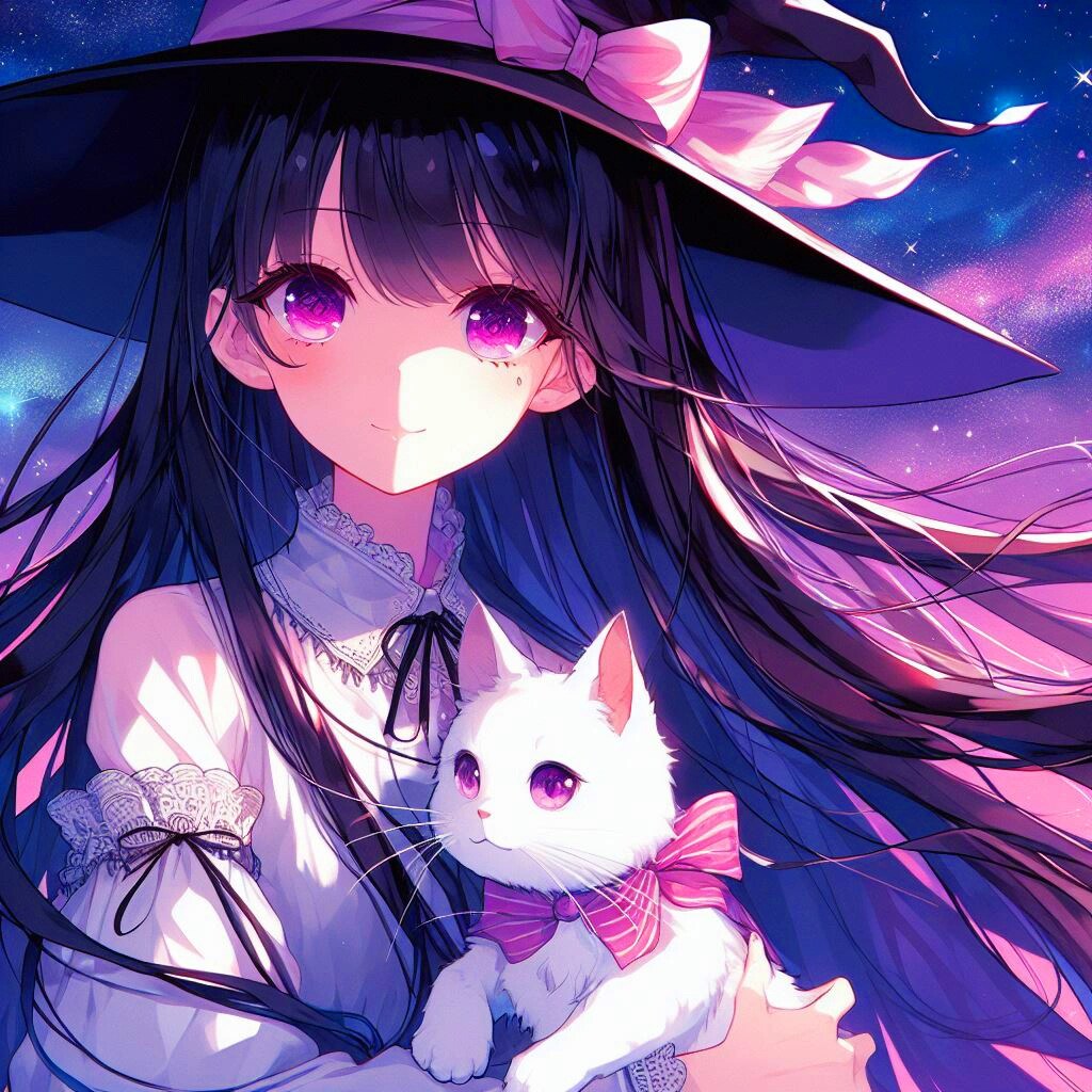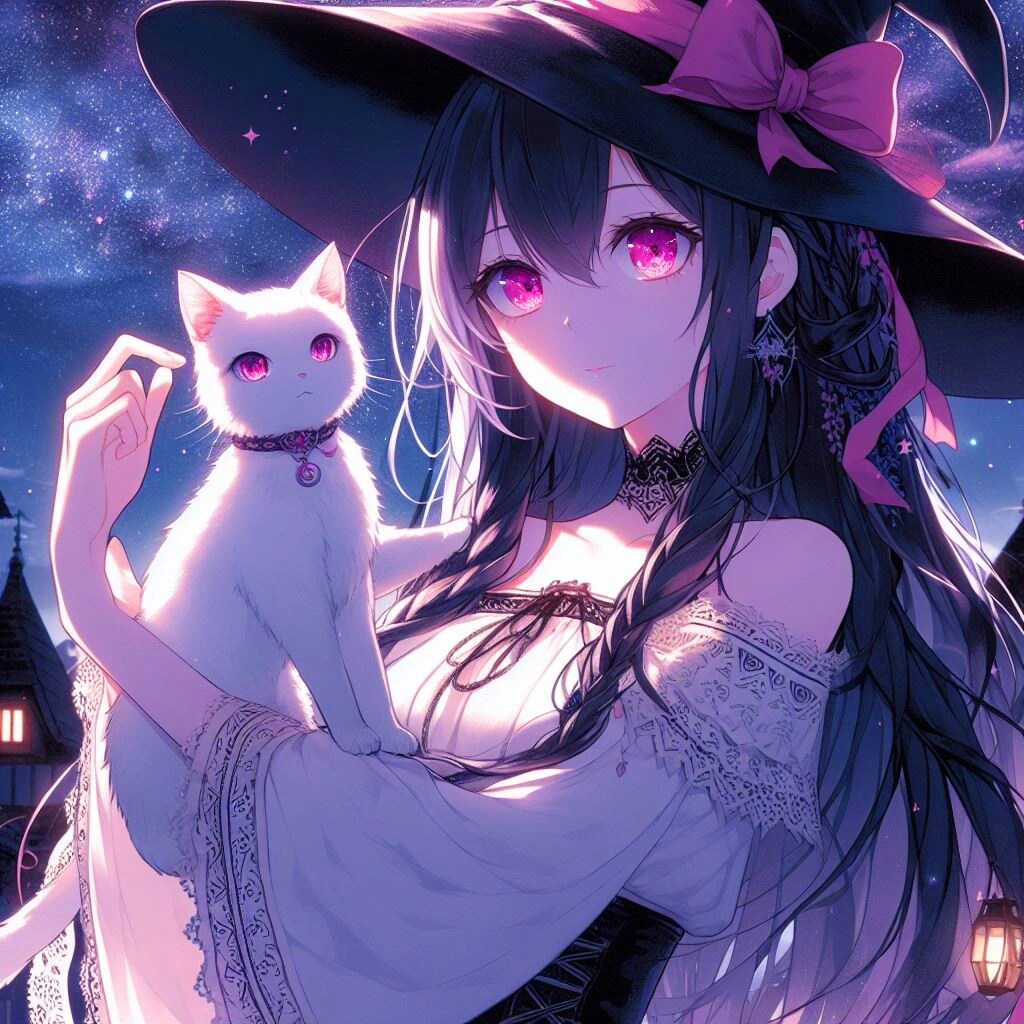 DALL-E3ではなかなか白猫がでなくて難しかったですが、なんとか白猫と同時に出せました!!DALL-E3の猫は安定していていいですね。毎回違った猫なのも面白いです。とりあえず夜空と魔女と猫の組み合わせ、好きです!!