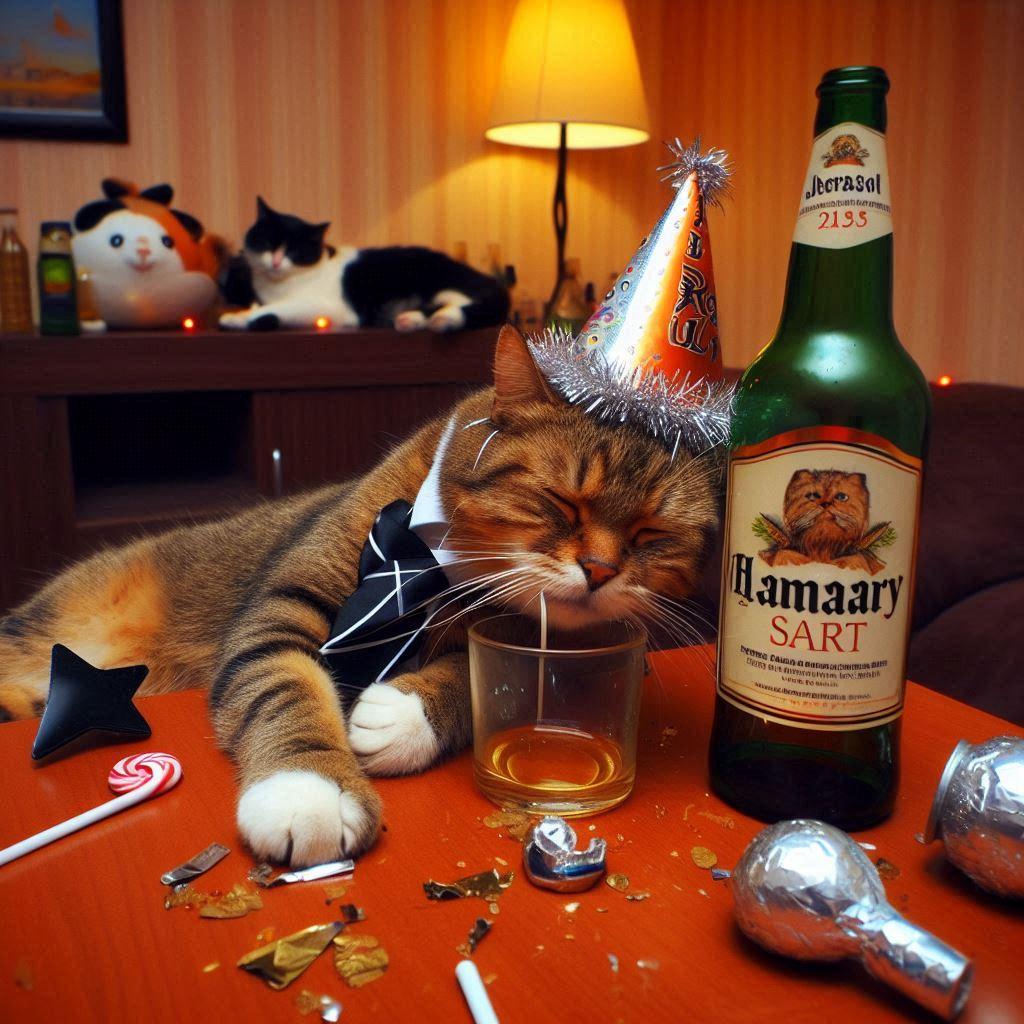 6/5追記:「二次会で酔い潰れた猫」が2024年6月4日のAIフォトデイリーランキング2位に入りました!