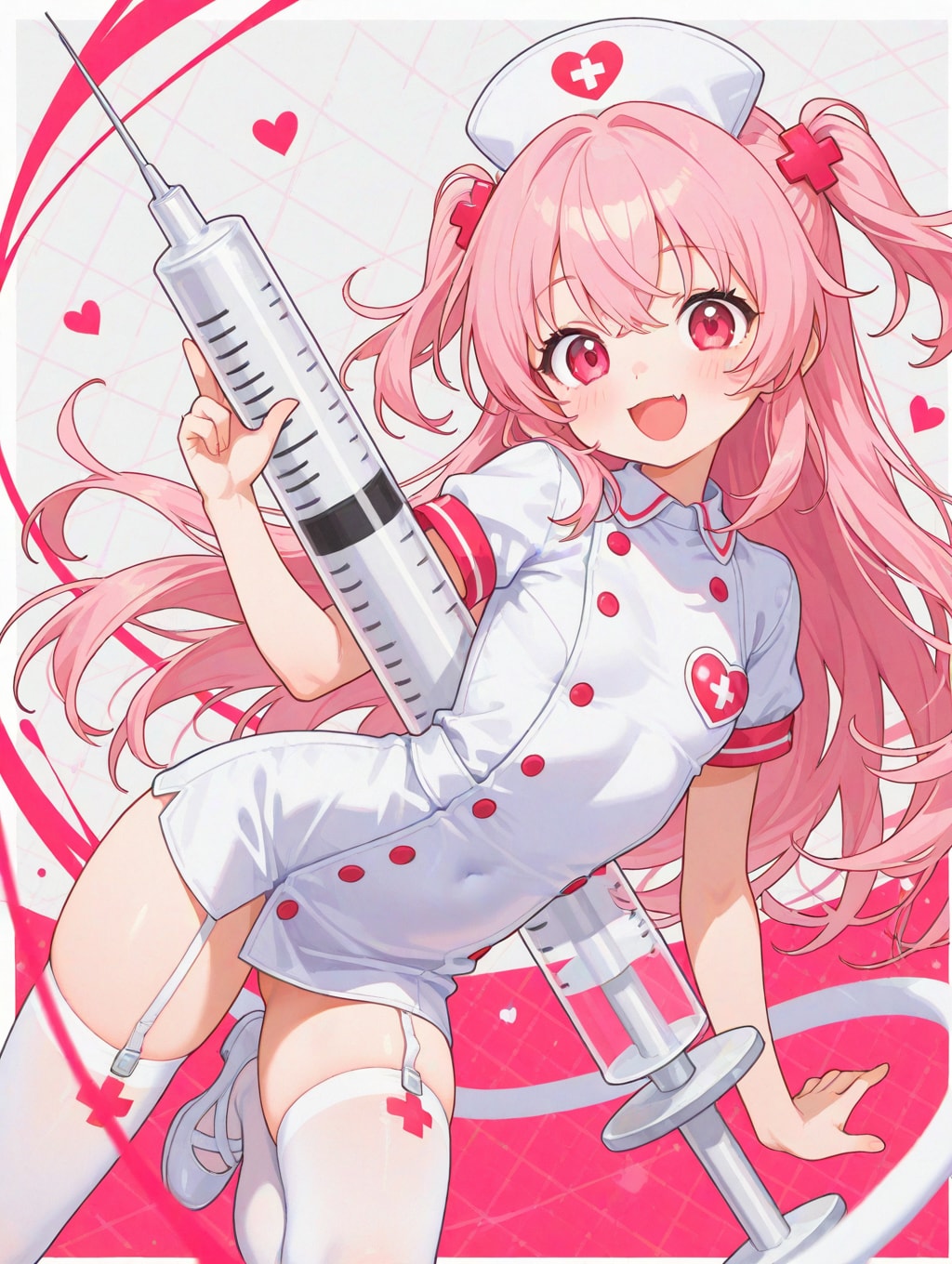 巨大な注射器で病原菌と戦うのメディカルヒーローです
