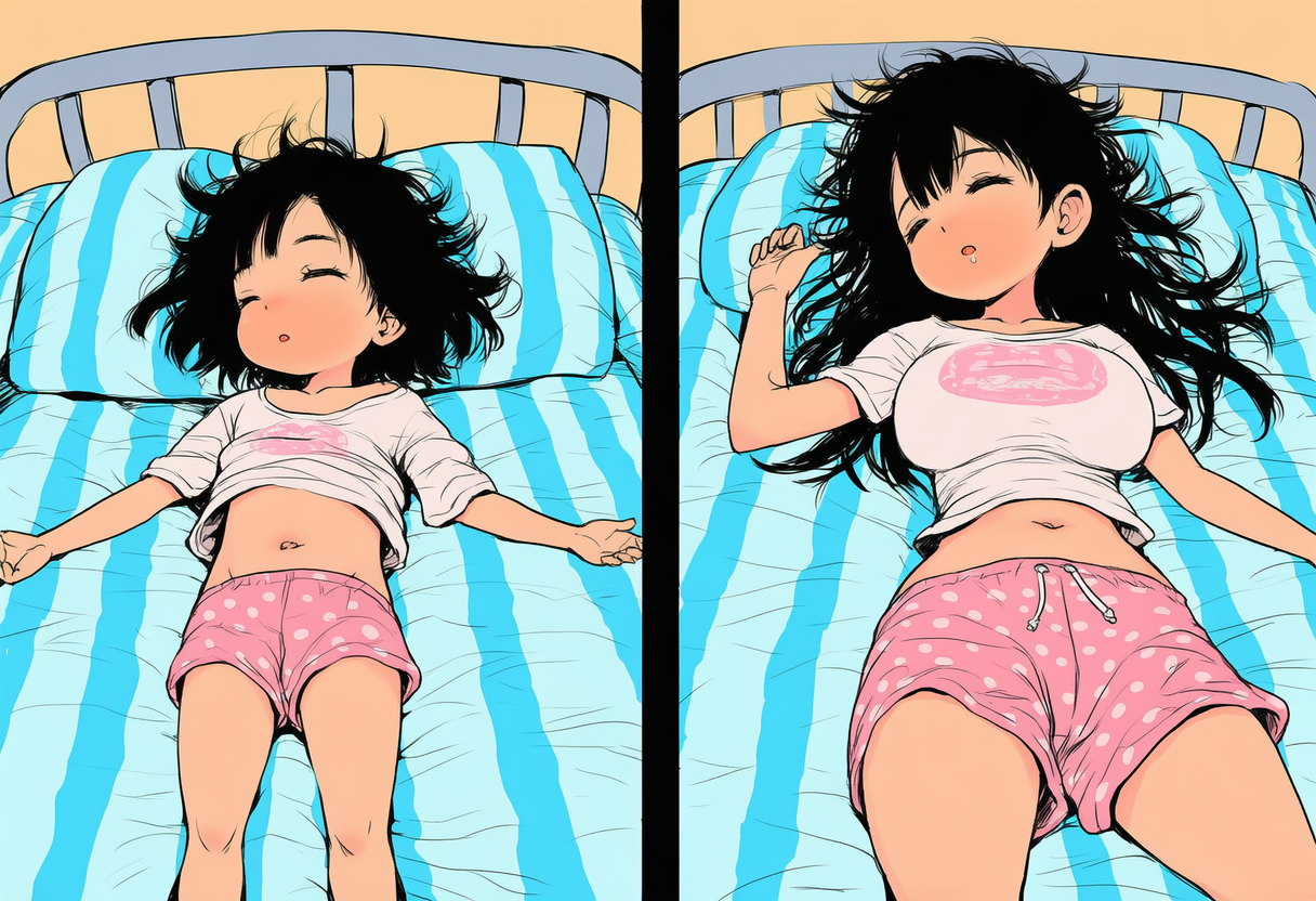 以前会った時の記憶ではまだまだ子供だったのに(左)、数年見ない内にこんな女の子らしい体つきに(右)