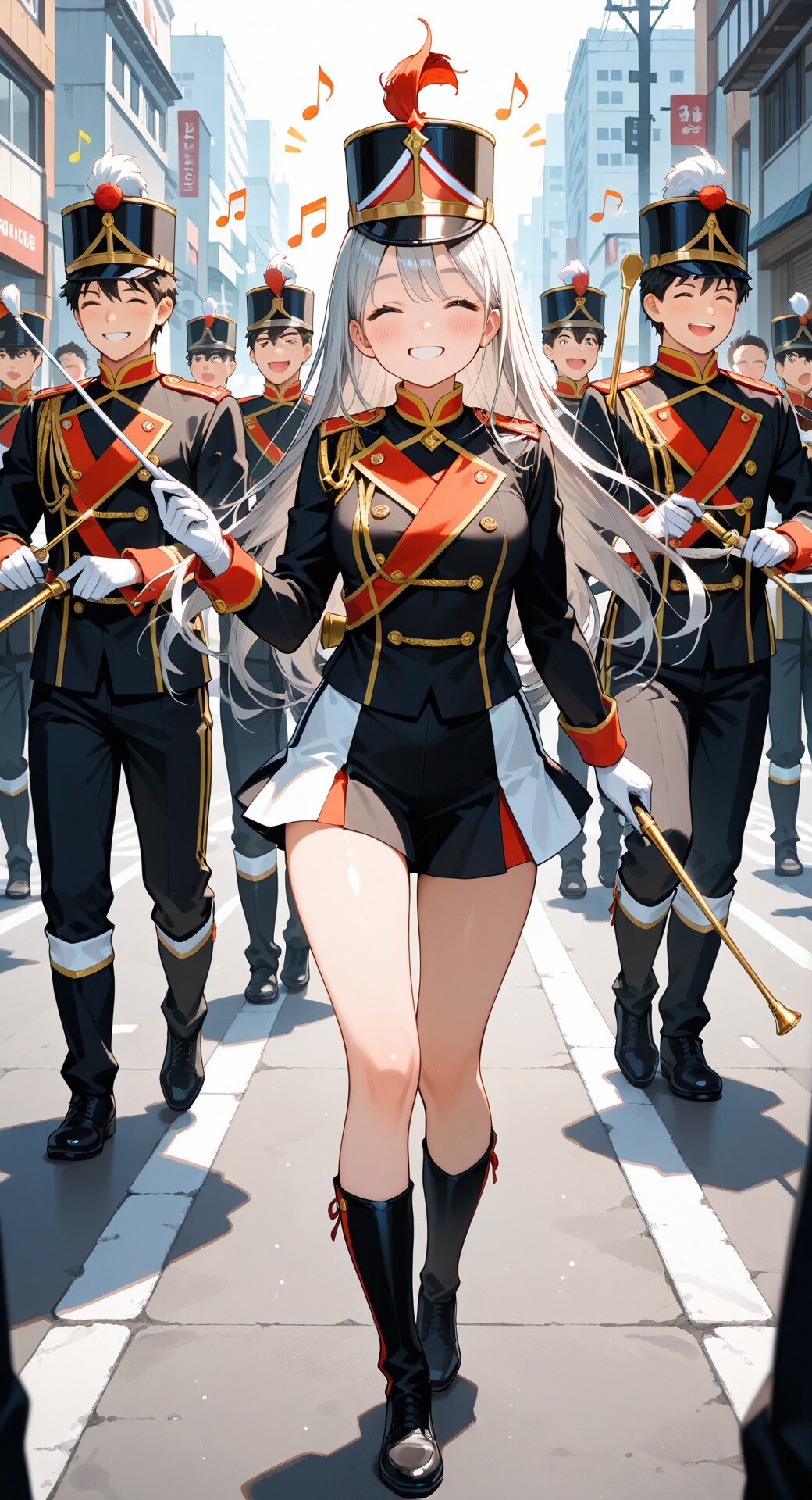 円筒形の特徴的な帽子(シャコー帽)をかぶってるのは「マーチングバンド」のコスチューム。