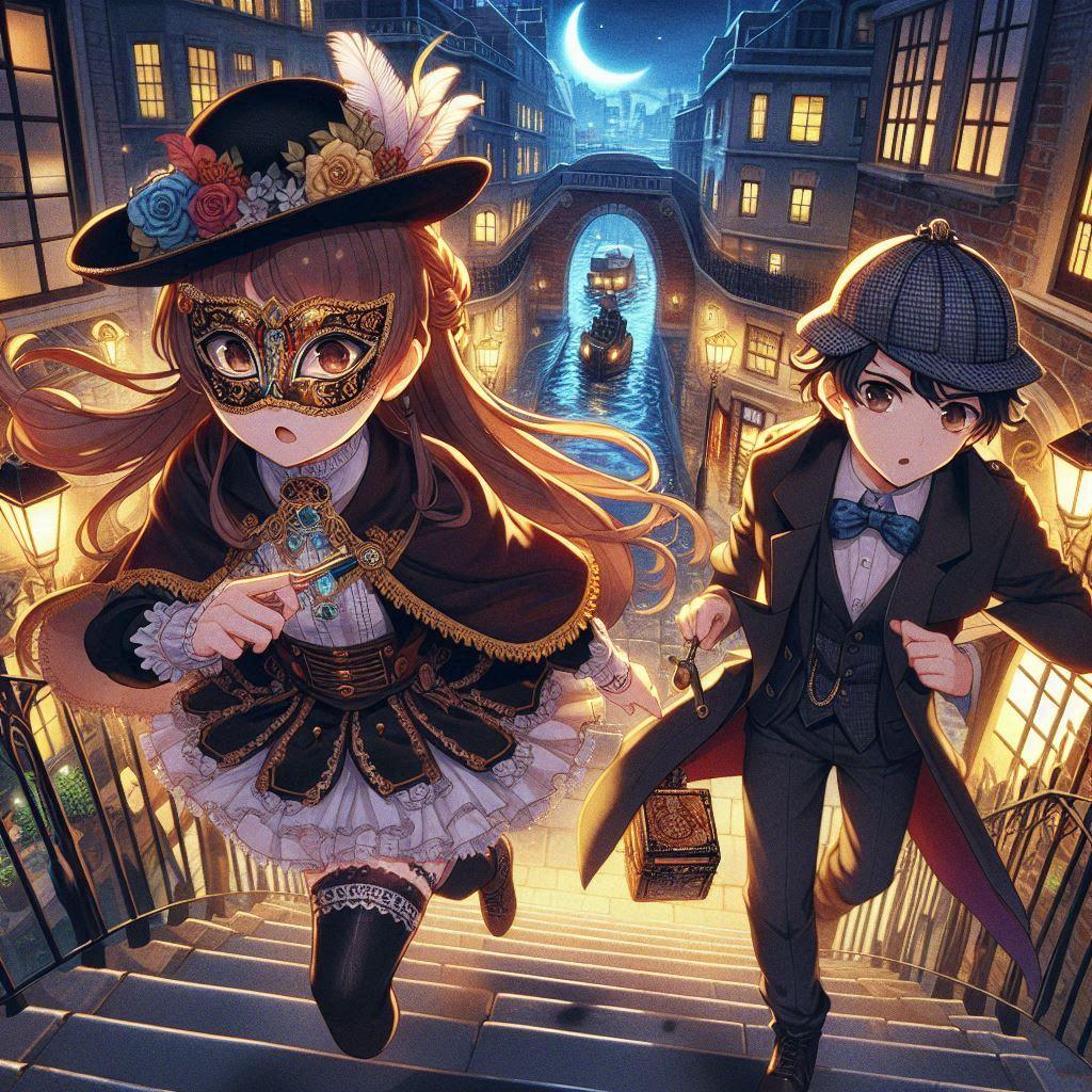 [7枚] 夜のロンドンを逃げる少女怪盗と追いかける探偵(ロリっ子大集合・一般向けの38)