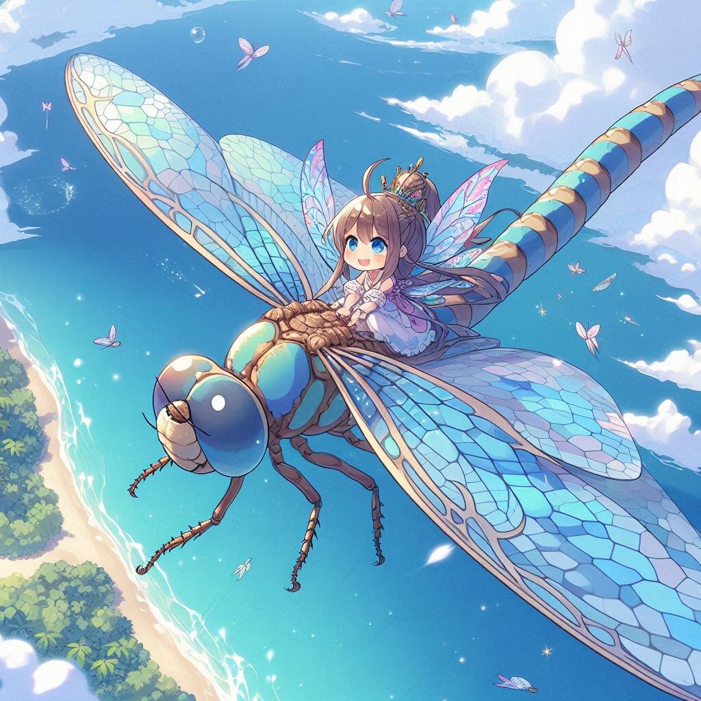 お友達の蜻蛉ちゃんに乗らせてもらっているちび妖精ちゃん