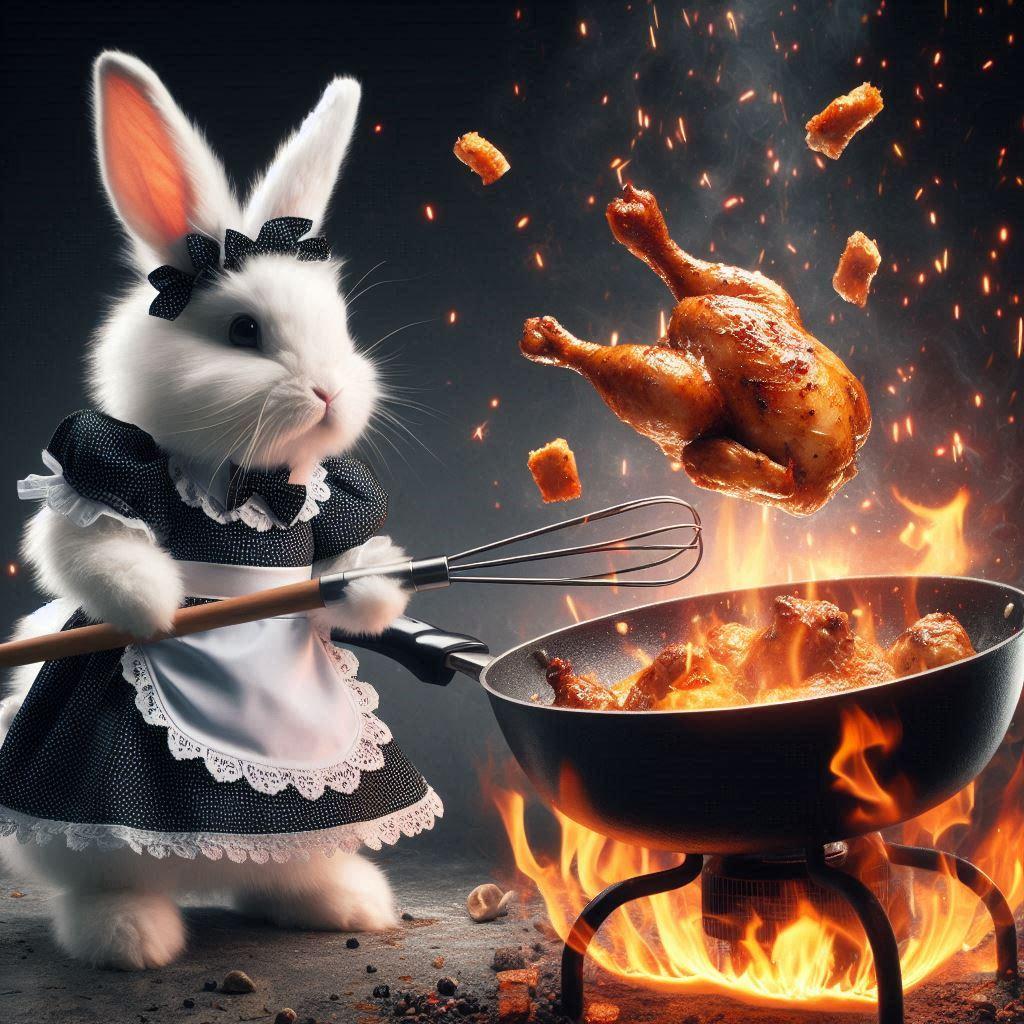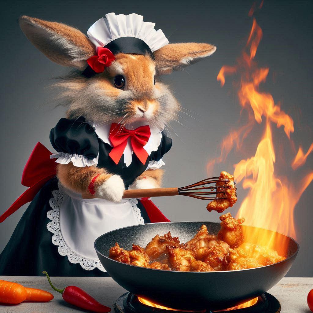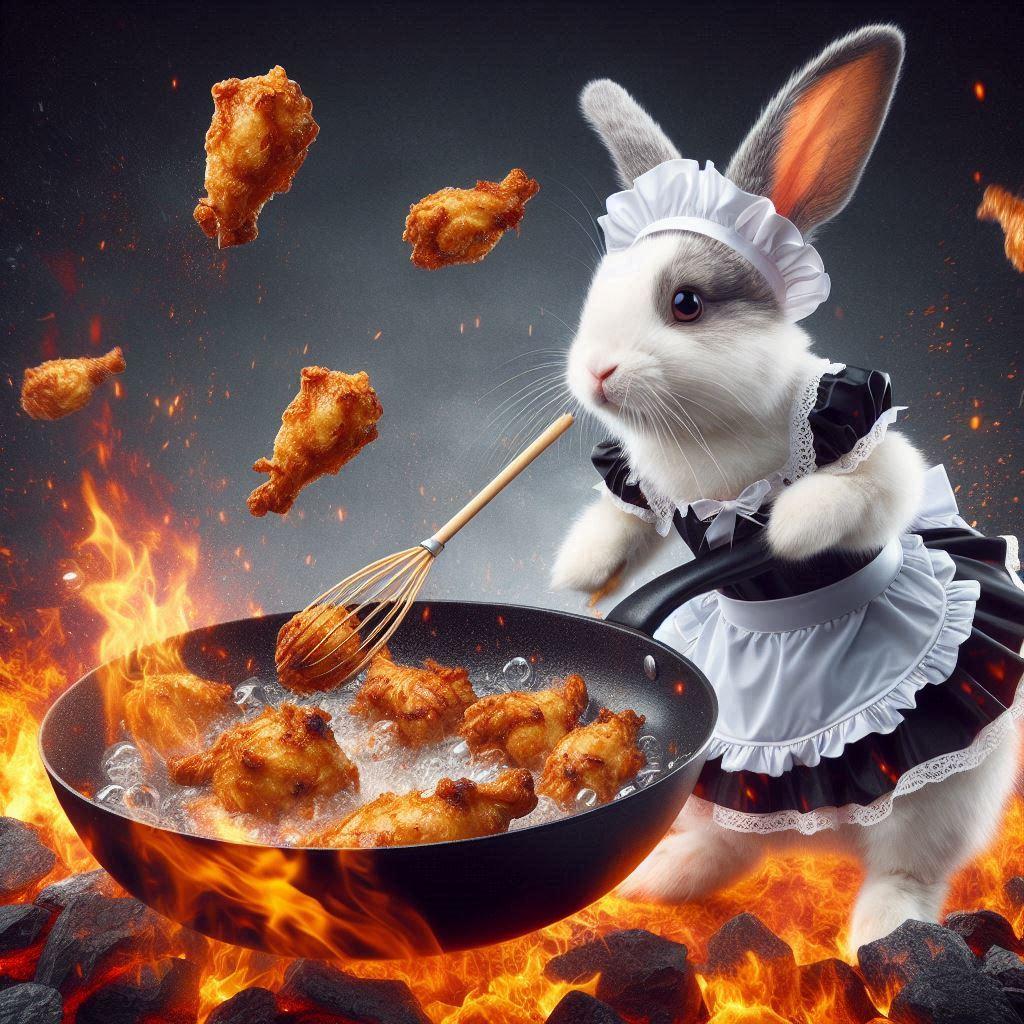 訓練されたメイドウサギにはこのぐらいの熱さなんてなんともないわ。