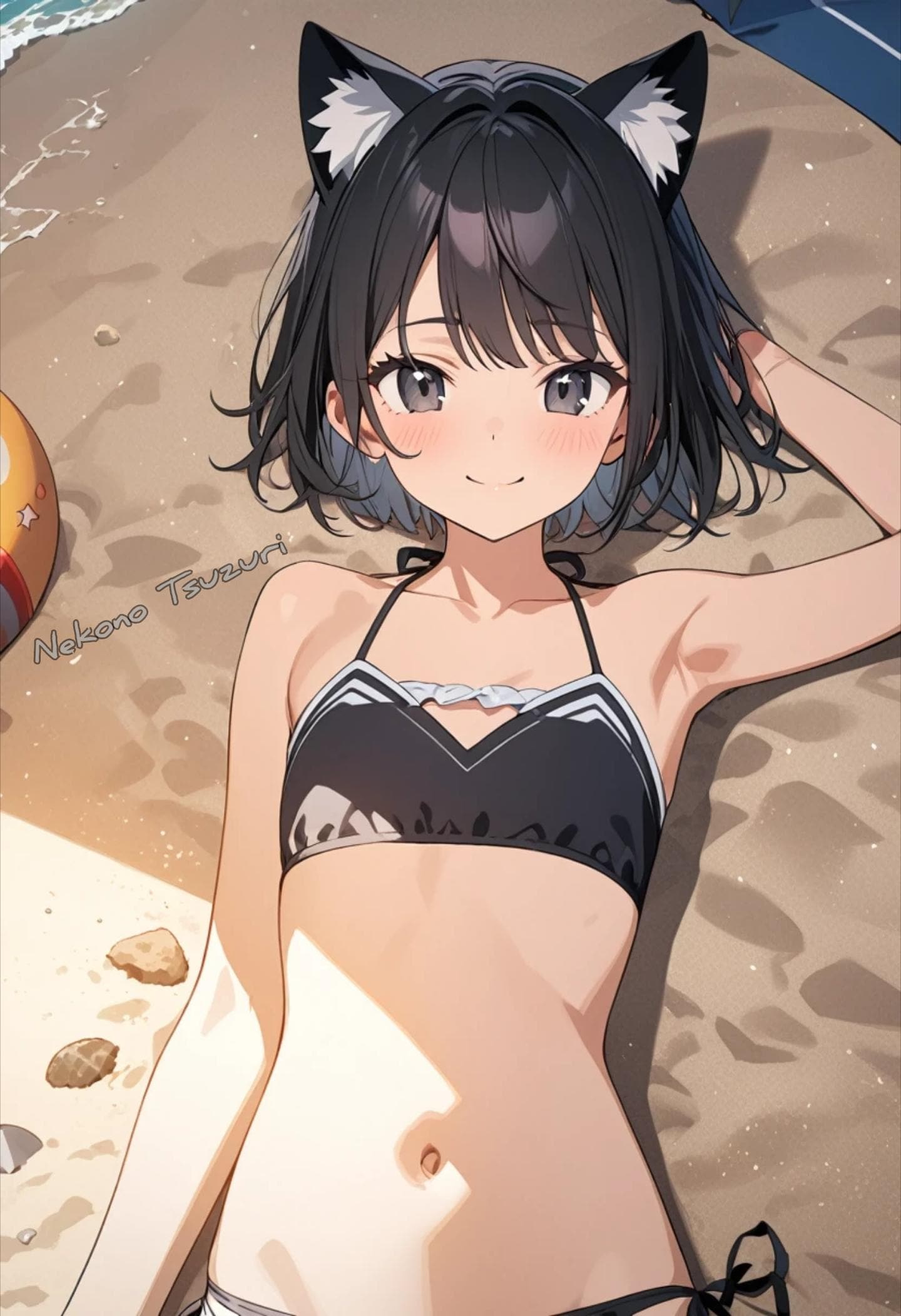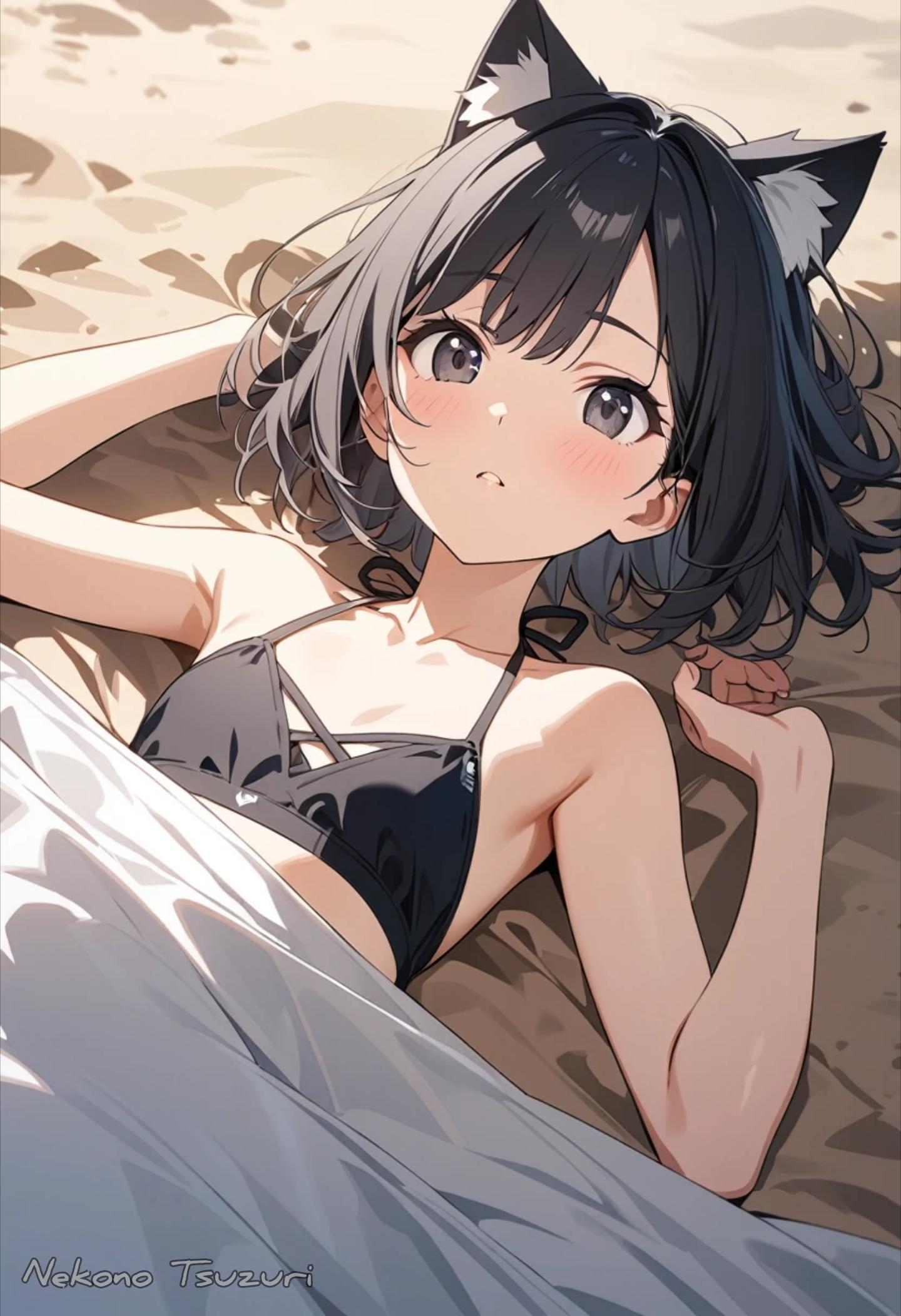 遊びつかれて眠るナニモニャイを文豪はお姫様抱っこして、シートの上に寝かせる。