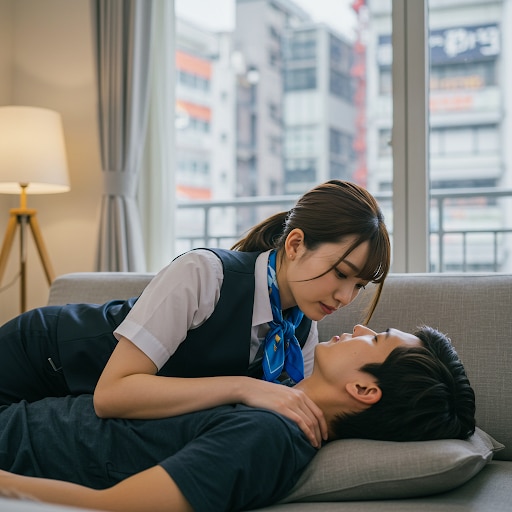 バス旅でキスまでしたガイドが家にきました。新素材のブラウスを着ていて、これは薄くて密着感と透明感が高く、肌と一体化して着心地いいもの。