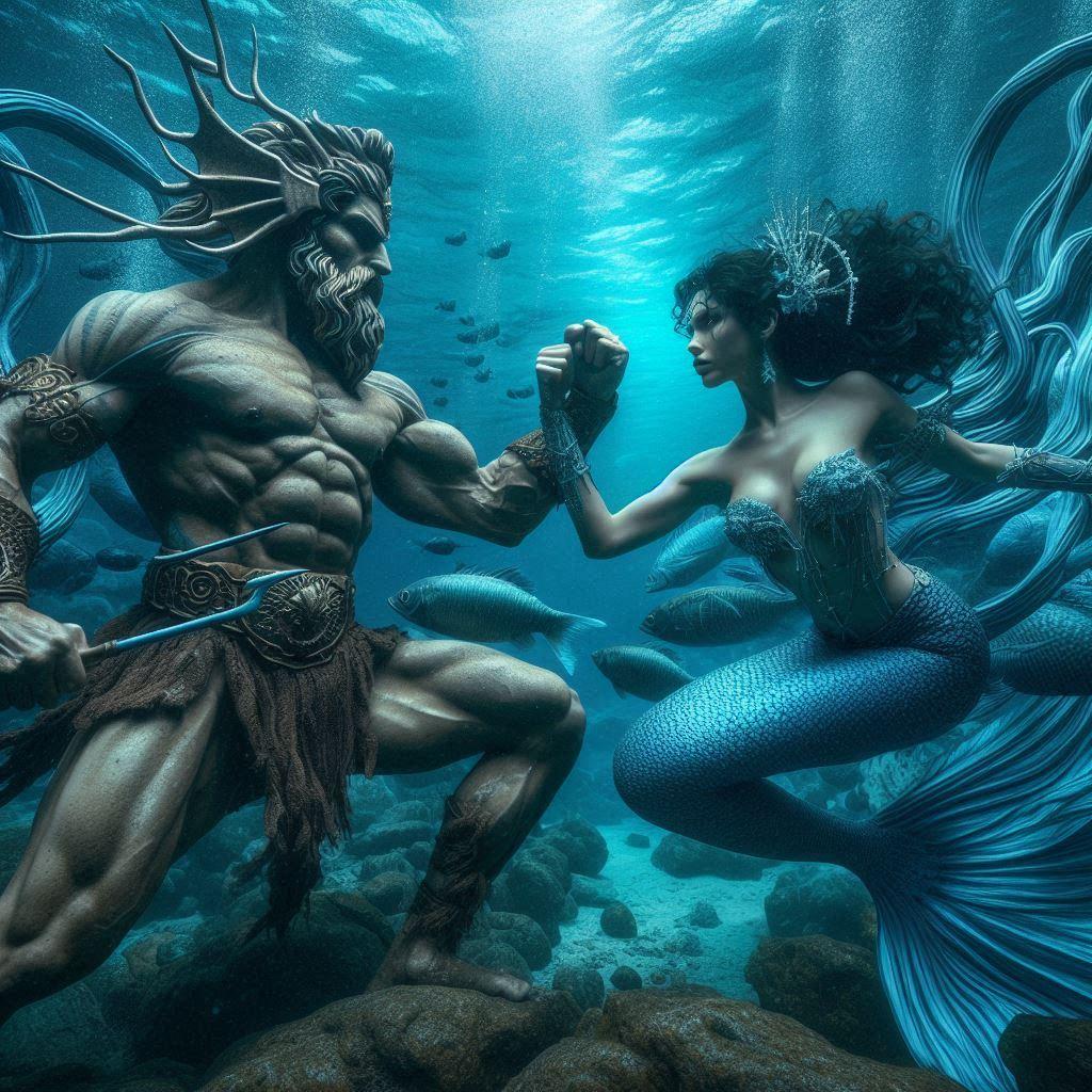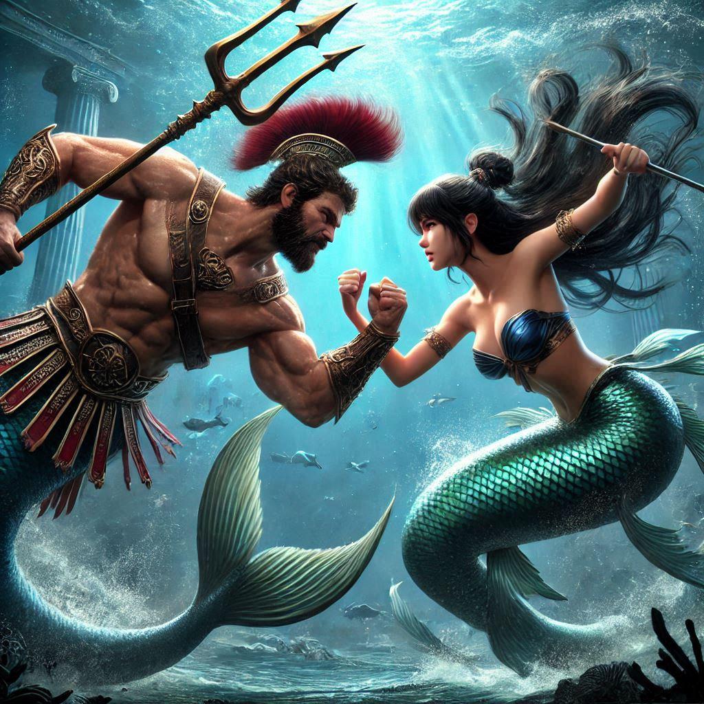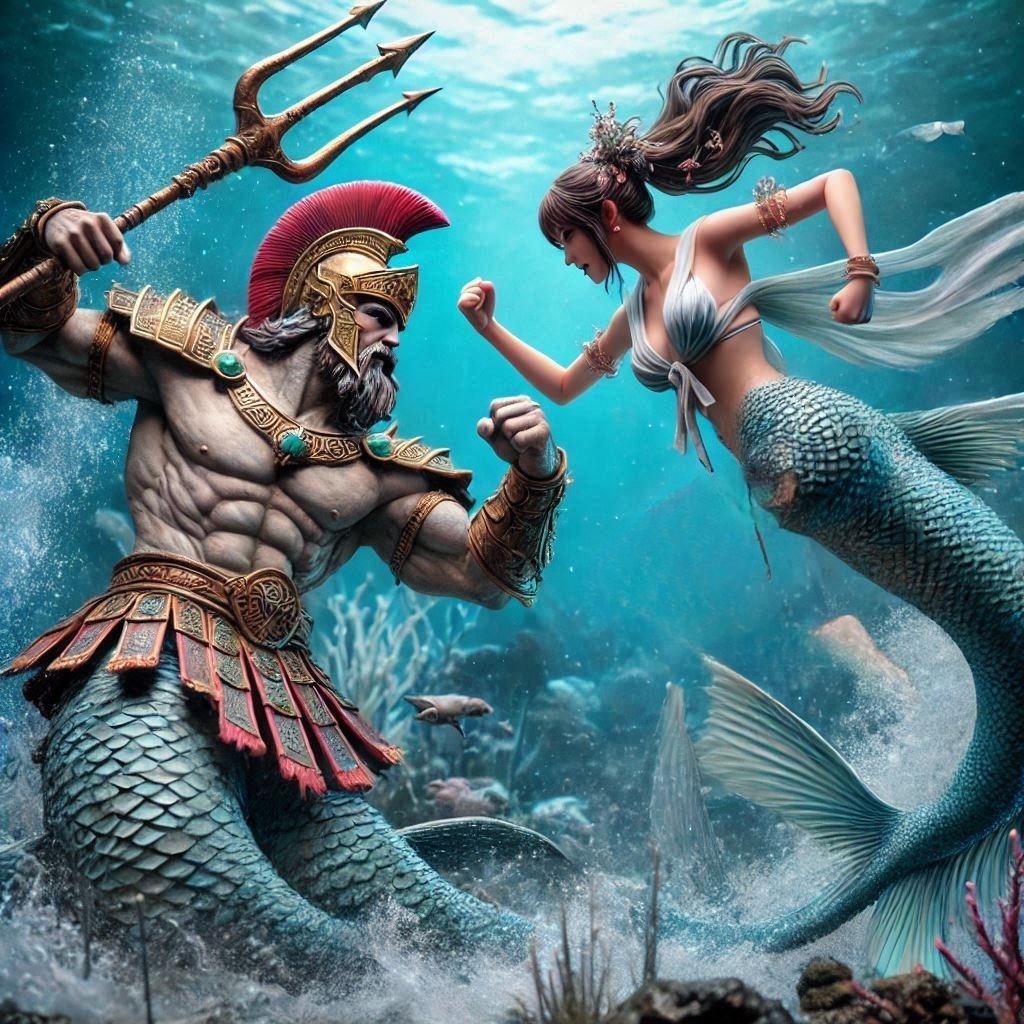 海中世界で(格闘王となったポセイドン)と(真剣に殴り合う武闘派の美しく逞しい)人魚。