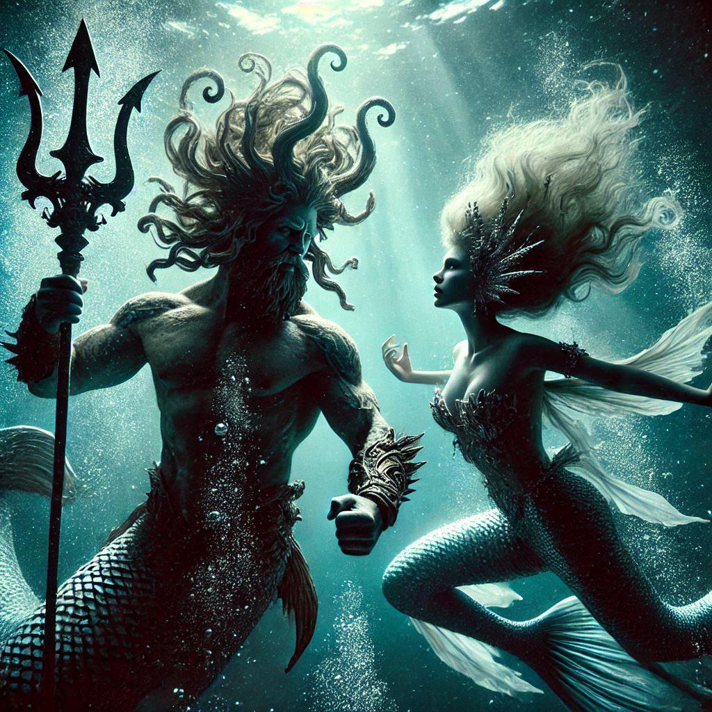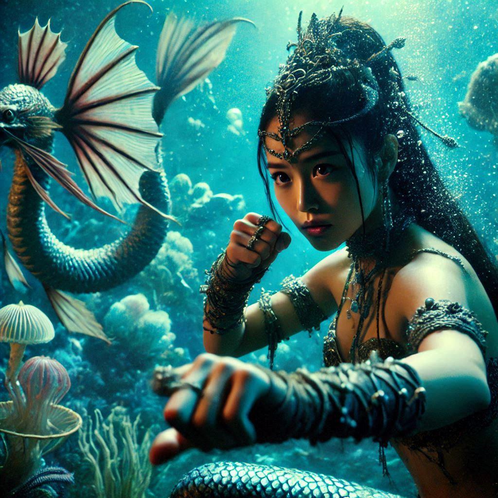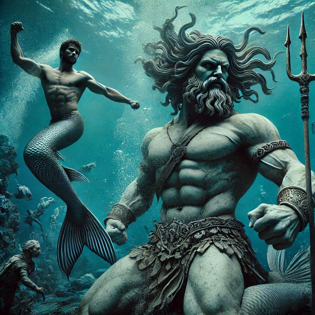 海中世界で(格闘王となったポセイドン)と(真剣に殴り合う武闘派の美しく逞しい)人魚。