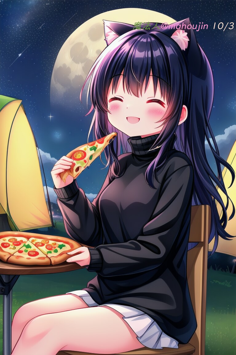 AIピクターズさんのお題が「ピザ」という事でクロとの星空のキャンプ場?でのピザデートです。因みに最初は10/1に出す予定でした。あちらの4日分のお題を添えて(笑)
