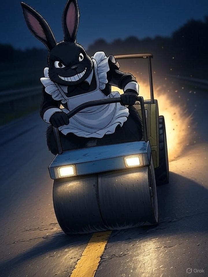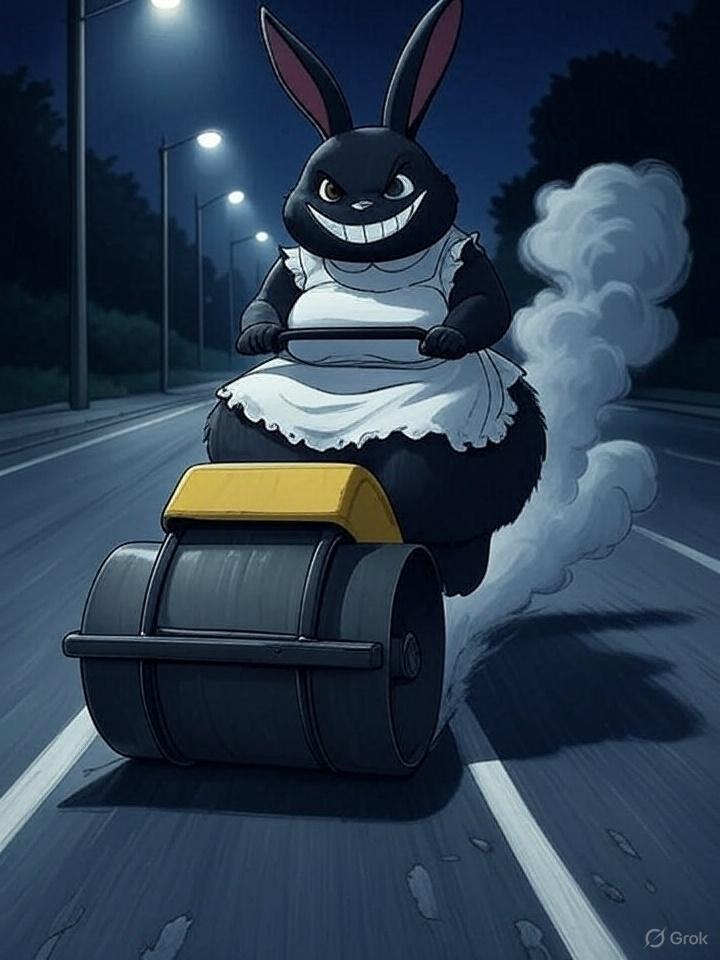 バッドガール達をロードローラーで整理していく冥土ウサギ