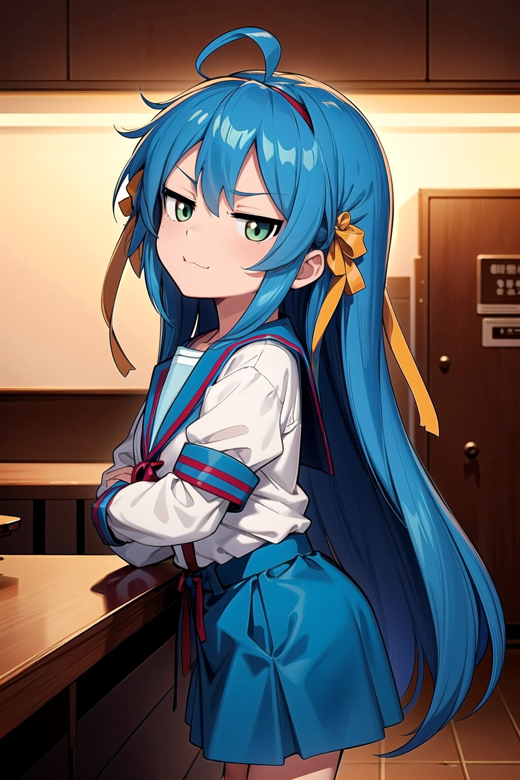 前回作成した「泉こなた」で色々と試行錯誤してたら、普通にガチャで出るのね...ハルヒの制服。