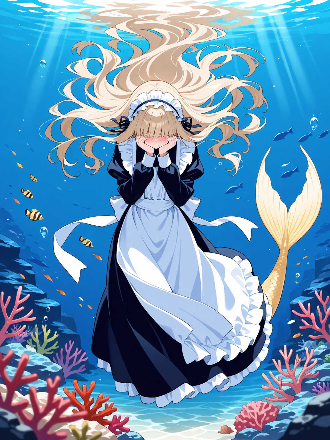 マァ、メイドの1枚目が生成された時は驚きました、こんな姿勢は初めてです。