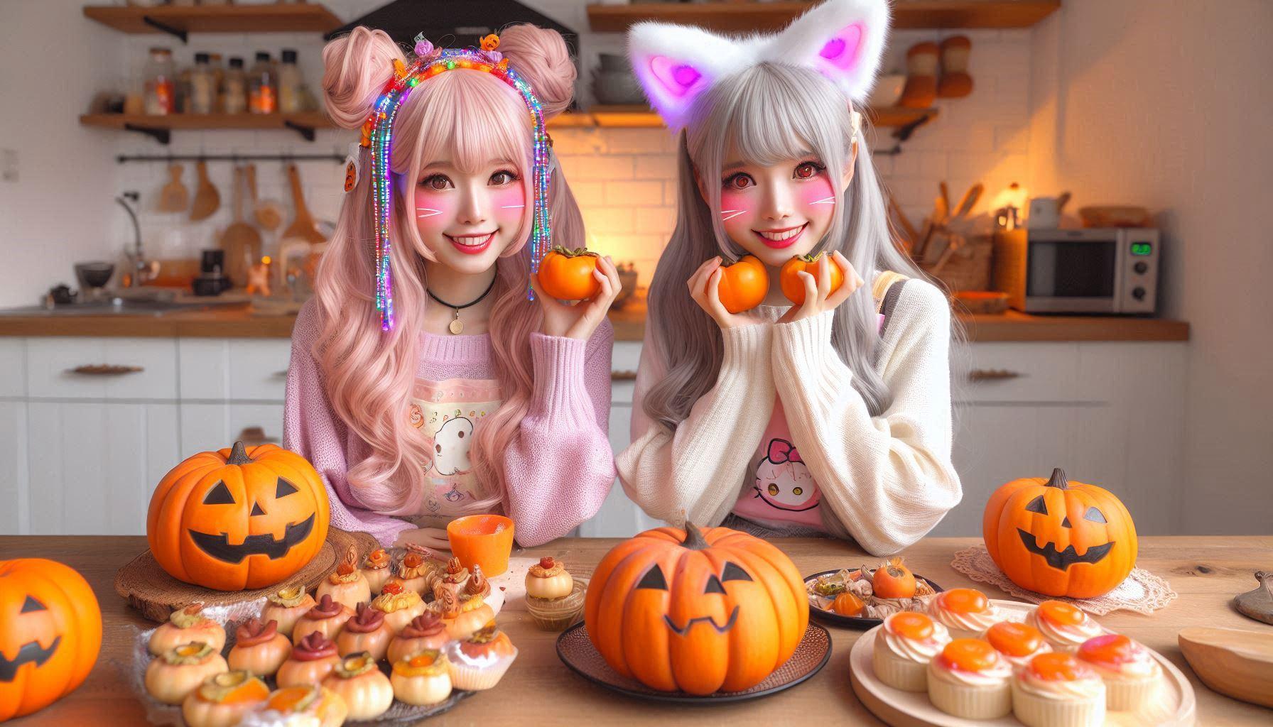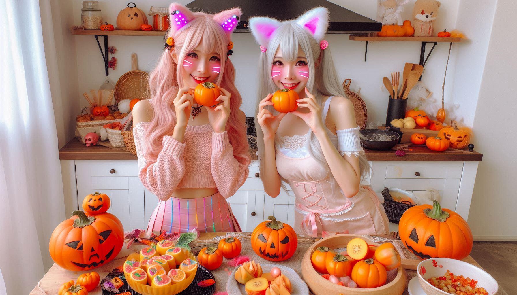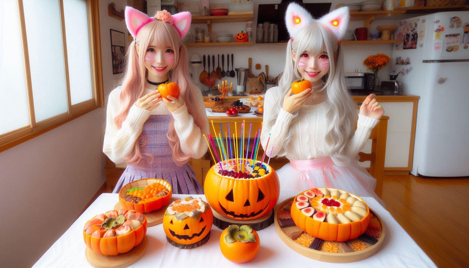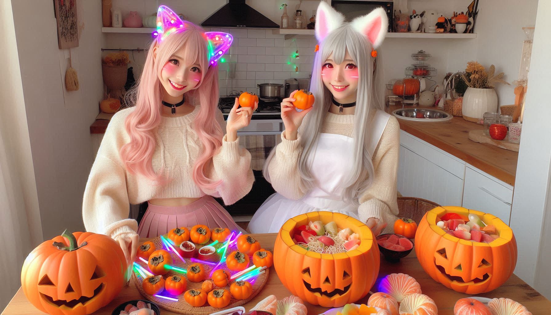 ハロウィン料理を準備しているサイバーピンクと雪狐😄