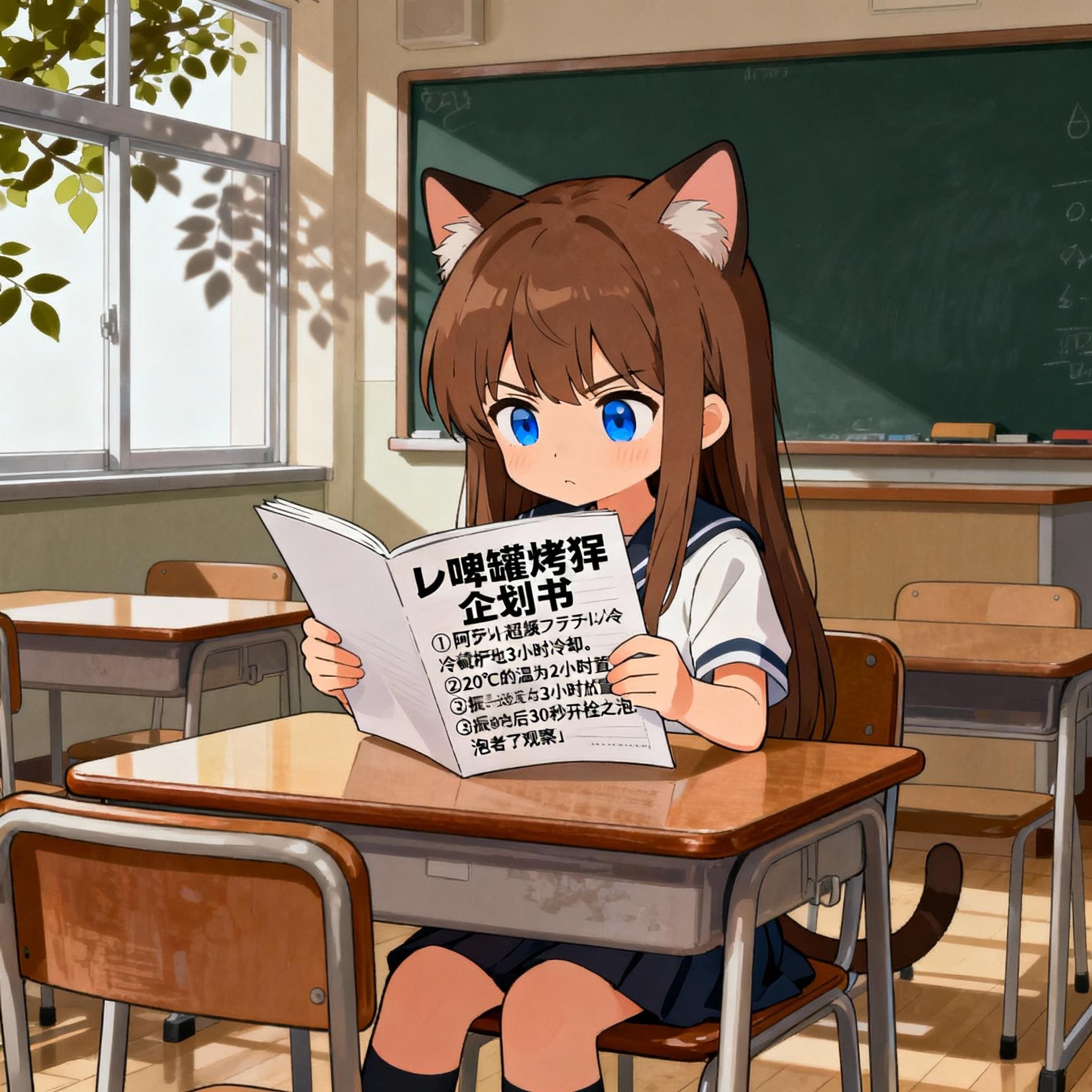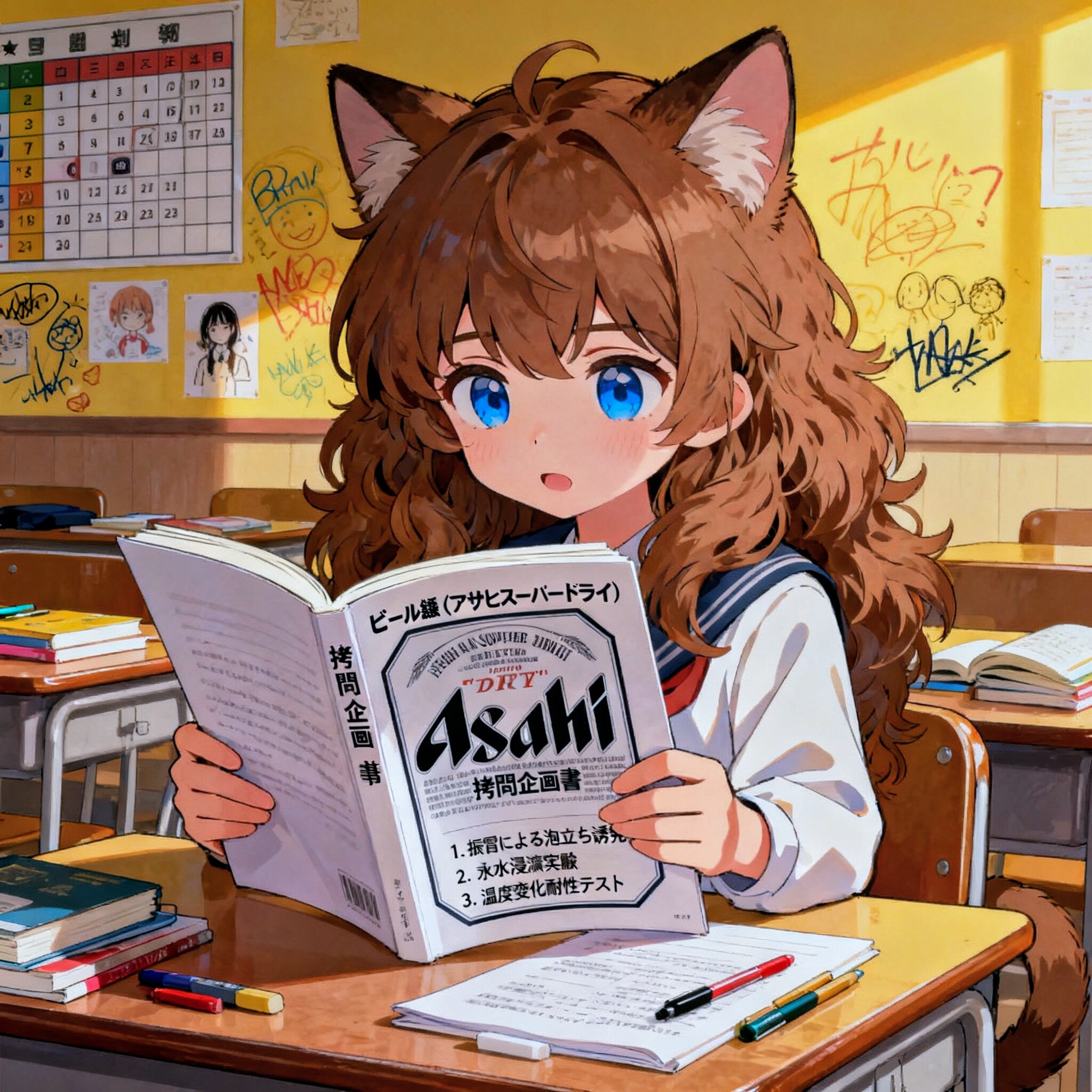 ビール缶と何して遊ぶか企画書を読む小さな女の子