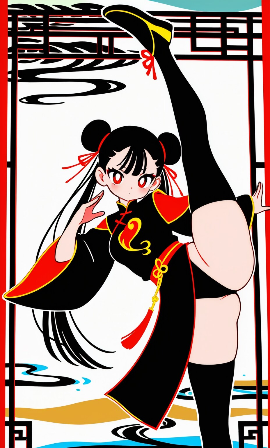 1枚目、ハイレグ開脚足技を繰り出す!チャイナっ娘ちゃんの架空フィギュア(PixAI製)♪。