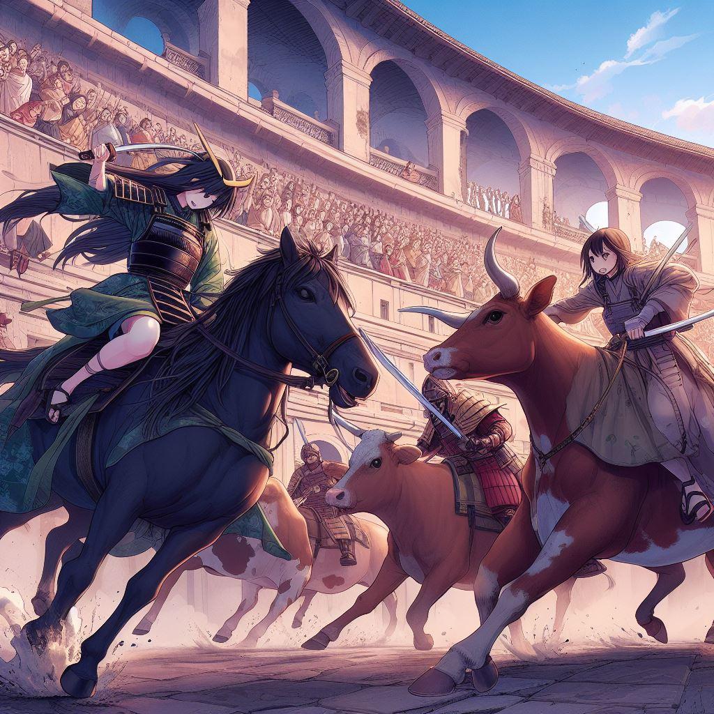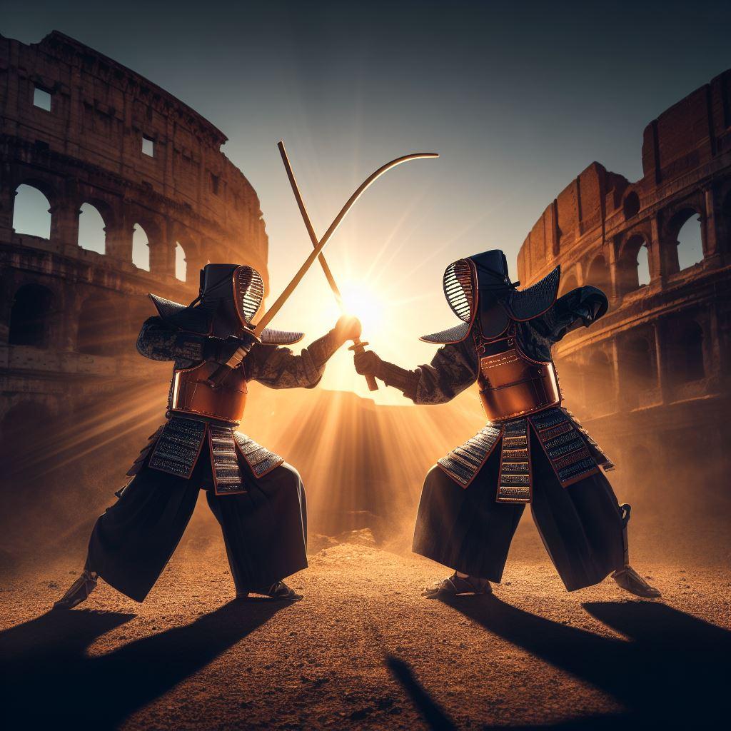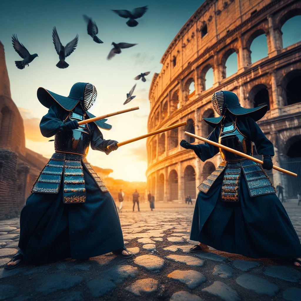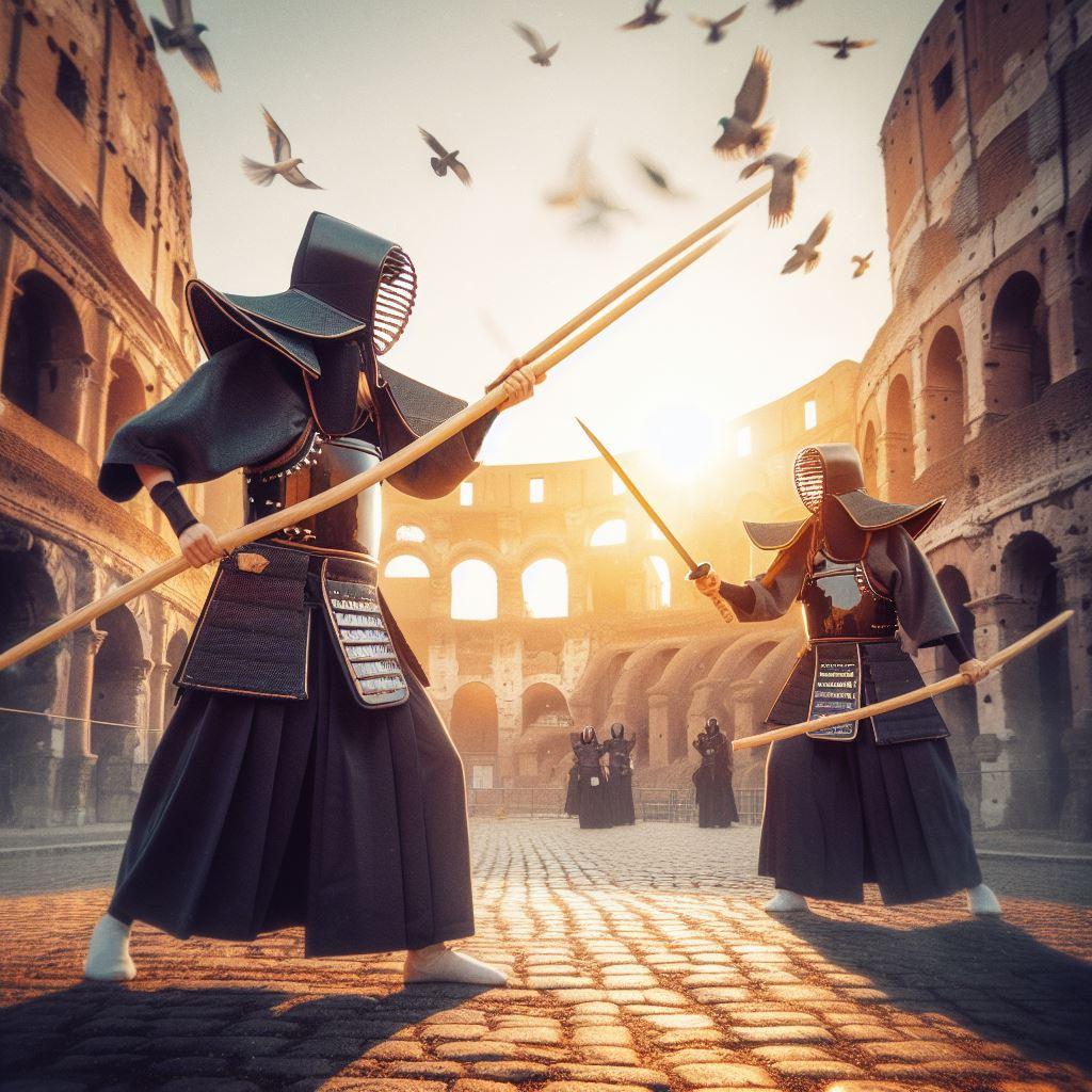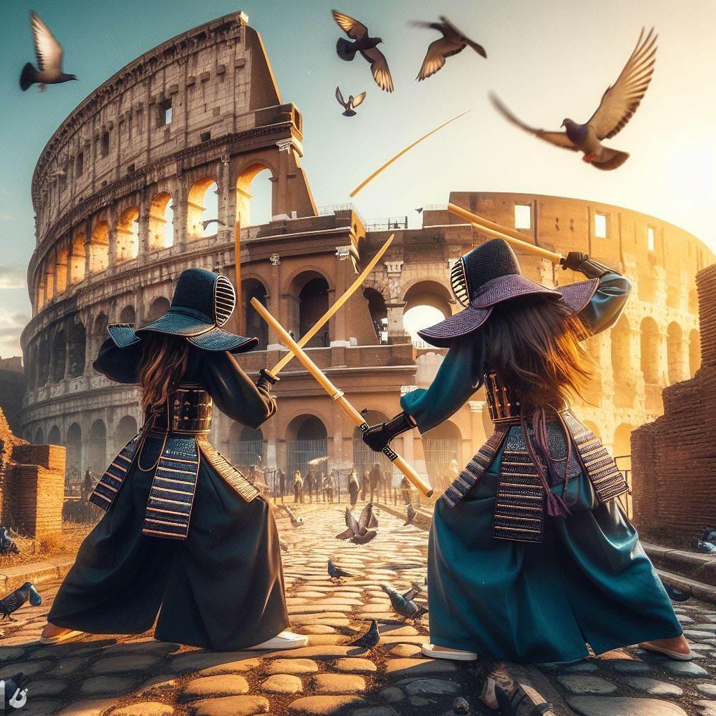 【DALL-E3】コロッセオで戦う剣道女子から想像ふくらみました